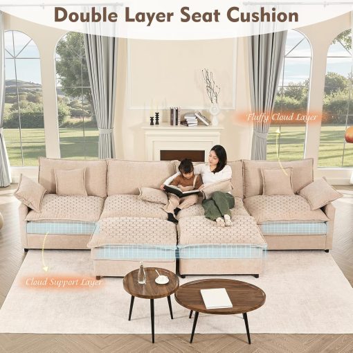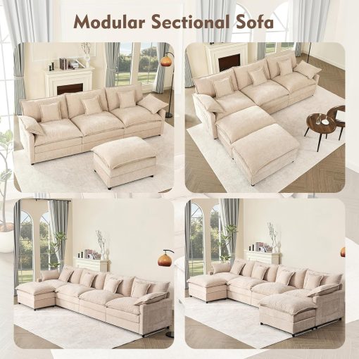- Unique Chenille Fabric: The cloud couch is made of fluffy chenille fabric and has a unique appearance and feel. The overall appearance of the sectional sofa is very elegant and exquisite, with surface textures that make it resistant to dirt, wear, easy to care and it can be Machine washed and dried. And we can PROVIED ALL COLOR FABRIC SAMPLES for you to review and choose from