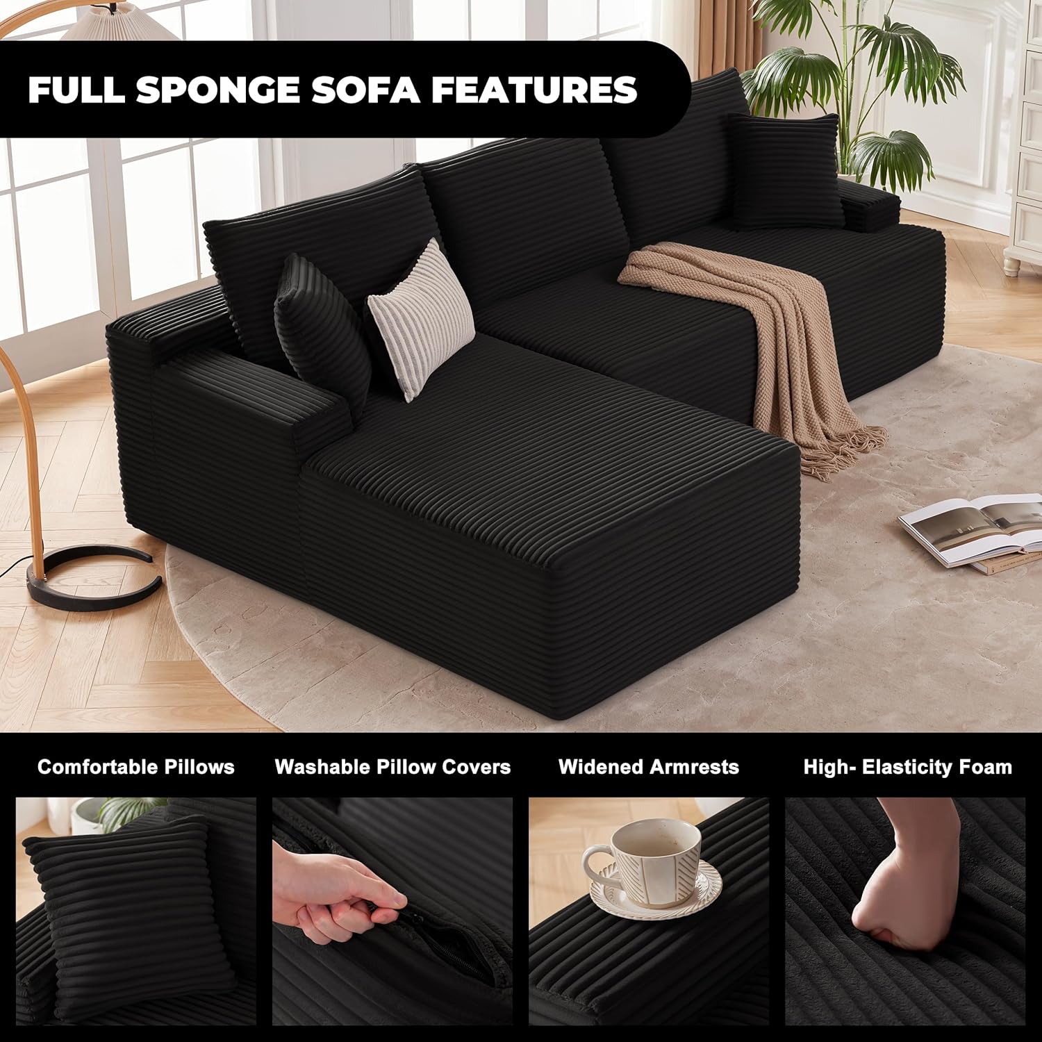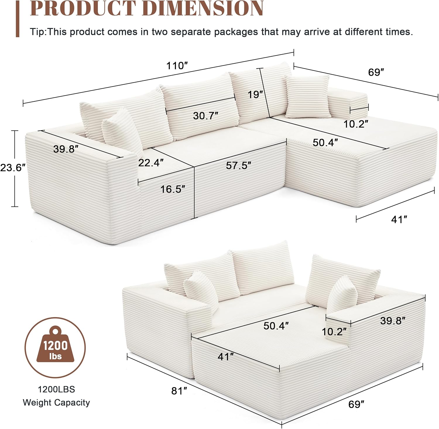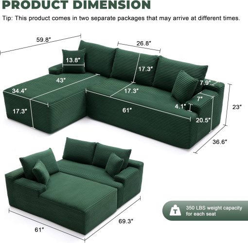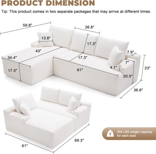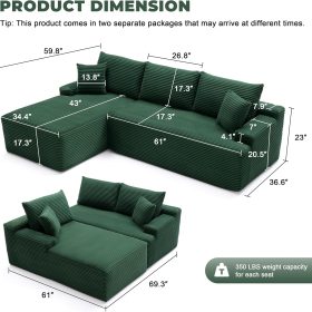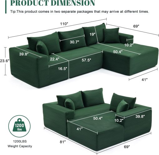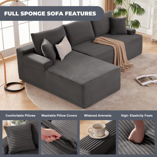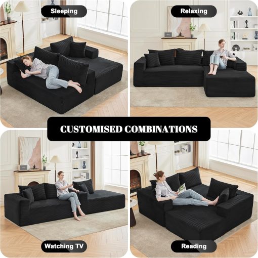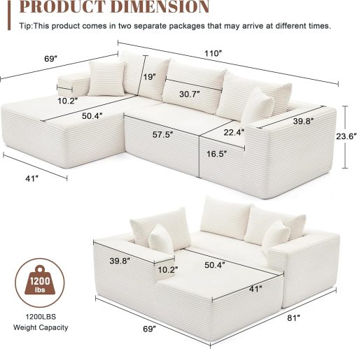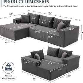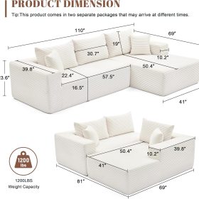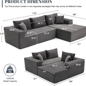 110 Cloud Sectional Couch, Boneless Sofa for Living Room Modular Sectional Sofa with Deep Seat