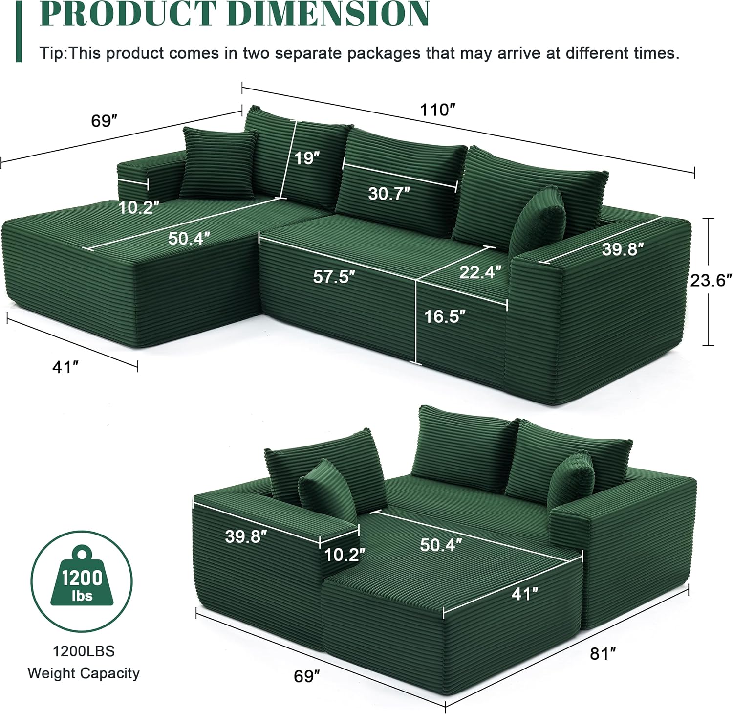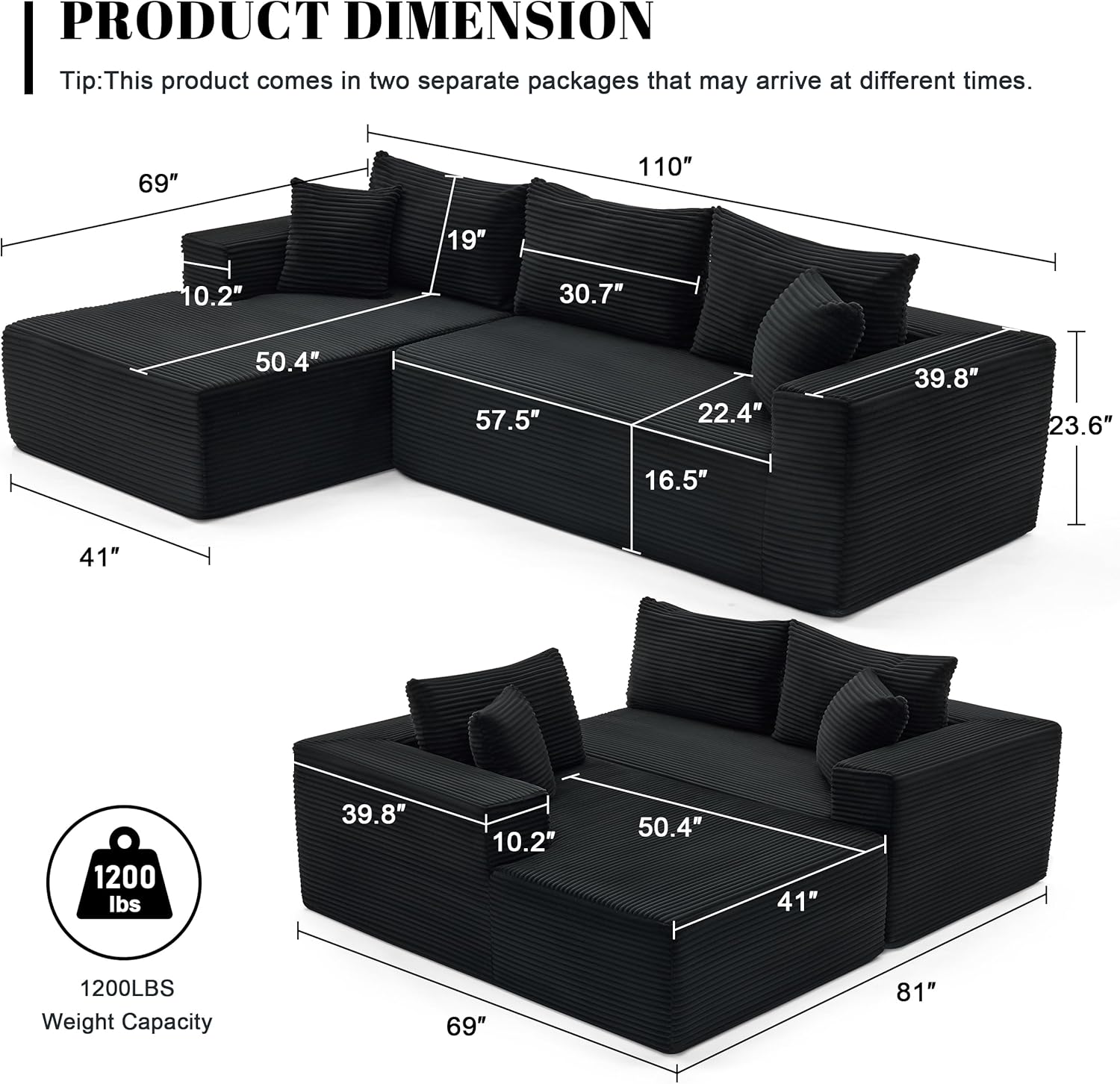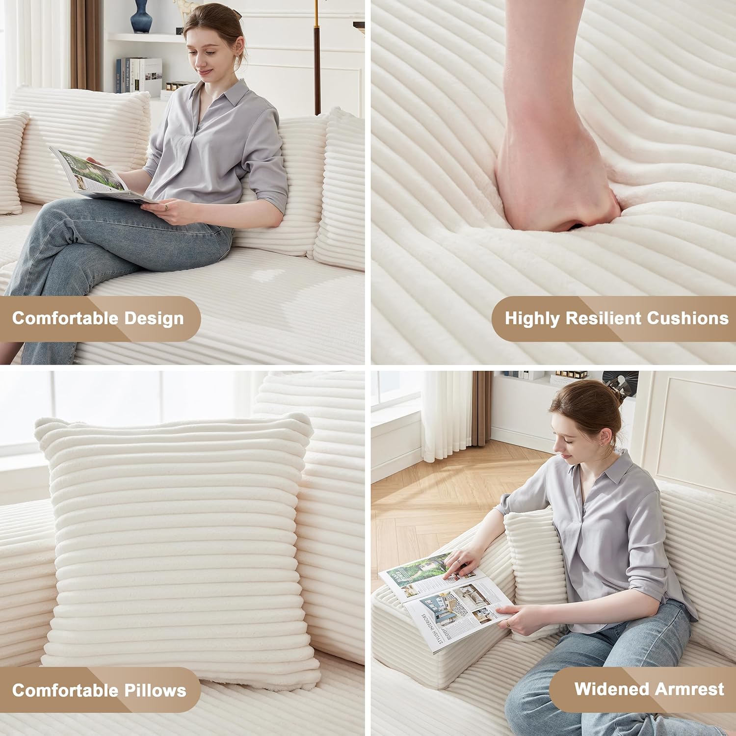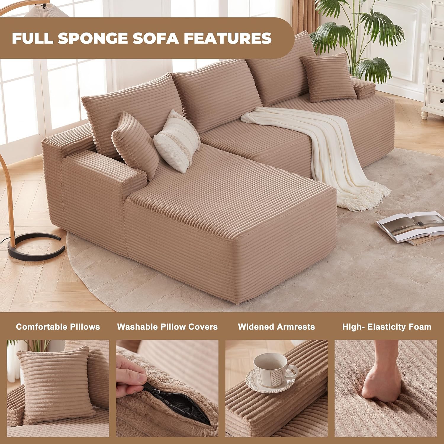 110 Cloud Sectional Couch, Boneless Sofa for Living Room Modular Sectional Sofa with Deep Seat