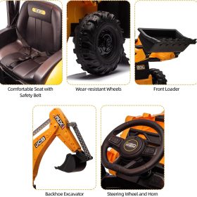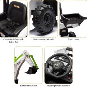 - 【Versatile Ride-on Toy�? This ride-on excavator toy is more than just a ride. It has three-in-one functions and can serve as an excavator, forklift, and race car. Equipped with a detachable front loader, excavator arm and roof, you can assemble and disassemble it by yourself, which is both fun and learning.