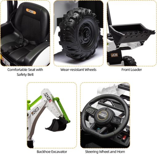 - 【Safe and Comfortable�? Safety is paramount with our ride on excavator. It comes equipped with shock absorbers for a smooth ride, seat belts to ensure your child is secure, and a slow start/stop function to prevent abrupt movements. This ensures a thrilling yet safe ride for your little one.