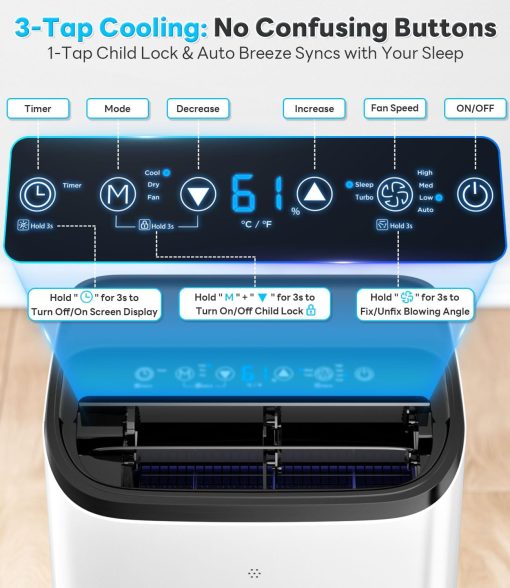 - 【𝐀 𝐆𝐨𝐨𝐝 𝐍𝐢𝐠𝐡𝐭 𝐒𝐥𝐞𝐞𝐩】Designed for light sleepers, our noise-reduction technology keeps sound levels as low as 48dB—quieter than a library conversation. Activate Sleep Mode to dim the display, reduce fan noise, and maintain your ideal temperature all night without disruptions.