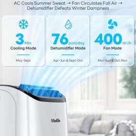 - 【�?𝐈𝐍 𝟏 𝐕𝐞𝐫𝐬𝐚𝐭𝐢𝐥𝐞 𝐀𝐂 𝐔𝐧𝐢𝐭】Easily switch between cooling, fan, and dehumidifier modes to meet your need and save you the hassle of buying separate appliances.