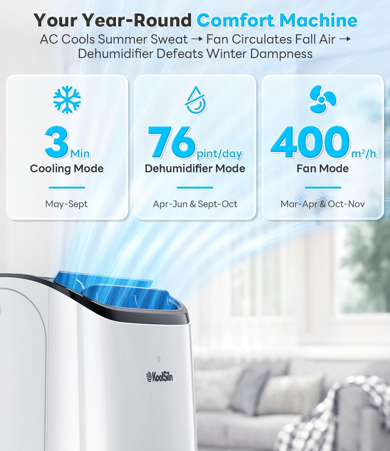 - 【𝐅𝐚𝐬𝐭𝐞�?𝐂𝐨𝐨𝐥𝐢𝐧𝐠 𝐒𝐭𝐚𝐫 𝟐𝟎𝟐𝟓 𝐏𝐨𝐫𝐭𝐚𝐛𝐥𝐞 𝐀𝐂 𝐔𝐩 𝐭𝐨 𝟕𝟎𝟎 𝐬𝐪.𝐟𝐭�?4,000 BTU cooling with an enlarged 77° air outlet . No more waiting hours to escape the heat—cools rooms 90 – 61°F in 15 mins. Compact and energy-saving, it balances rapid cooling with quiet operation for year-round comfort.