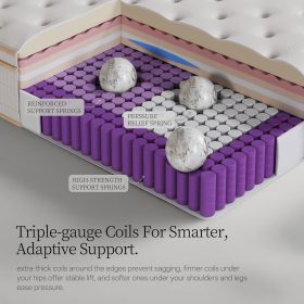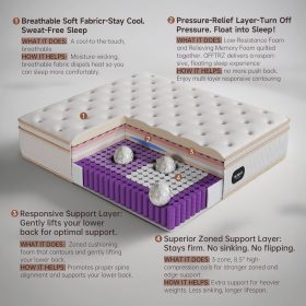- Zoned Support for Spinal Alignment. Built with enhanced pocket coils and added lumbar foam, this mattress targets key pressure areas—especially the hips and lower back. The zoned support system promotes proper spinal alignment and helps reduce back pain for a healthier night’s rest.