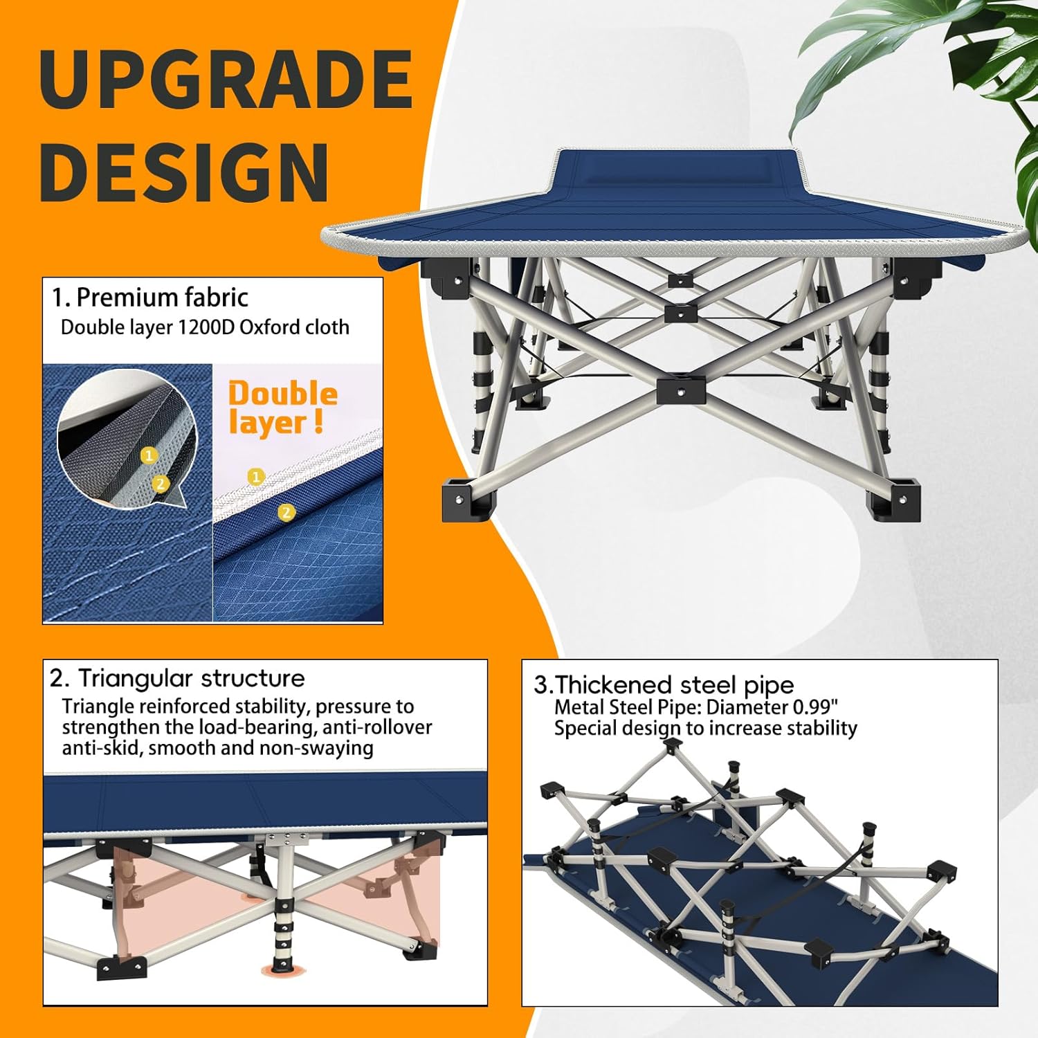 - 【Premium Fabric】The folding cot is made up of double-layer 1200D Oxford fabric for superior strength, water resistance and easy cleanability, with side pockets that can easily accommodate your phone or keys.
