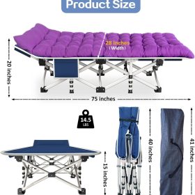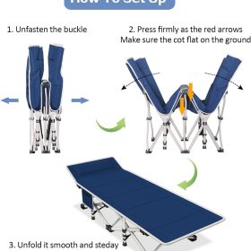 - No assembly required: This sleeping cot can be used without assembly. It only takes a few seconds to set up and fold, and it is convenient to store and save space. The sleeping cot can be put into a storage bag for easy carrying and storage. The storage size is 40*10*8 inches.