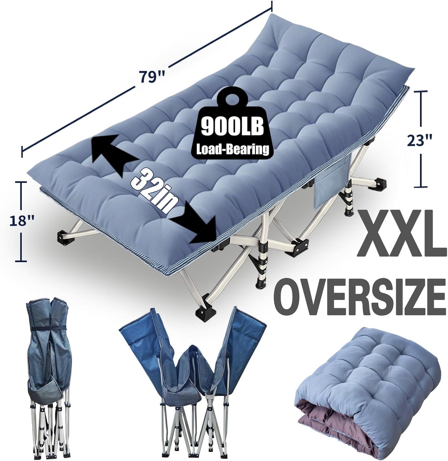 - Stable and comfortable: The size of this camping bed is 75 x 28 inches (L×W), only 14 pounds and can easily support 500 pounds, because the frame is made by 26 pcs steel pipes, which is strong and durable. This mat is filled with fiber cotton, which is soft and skin-friendly.