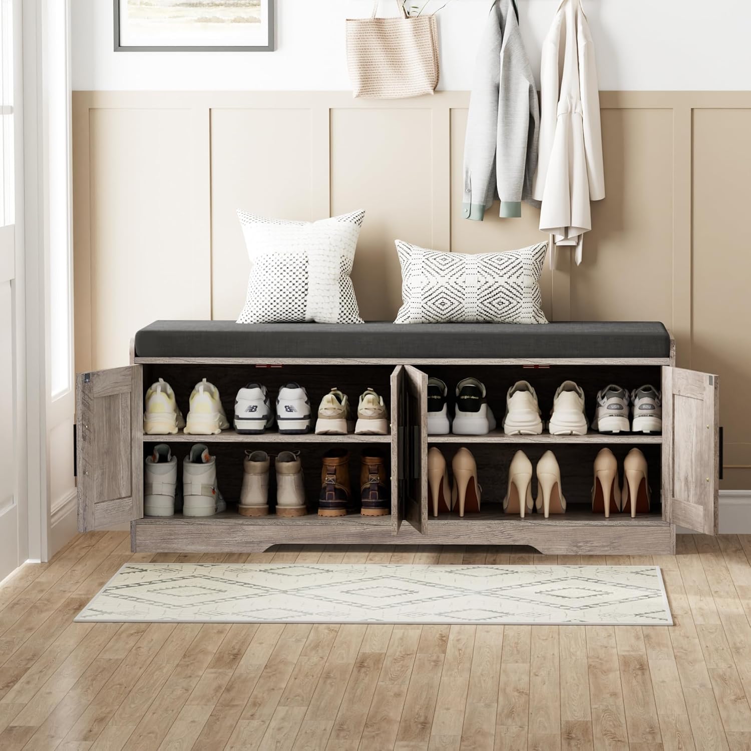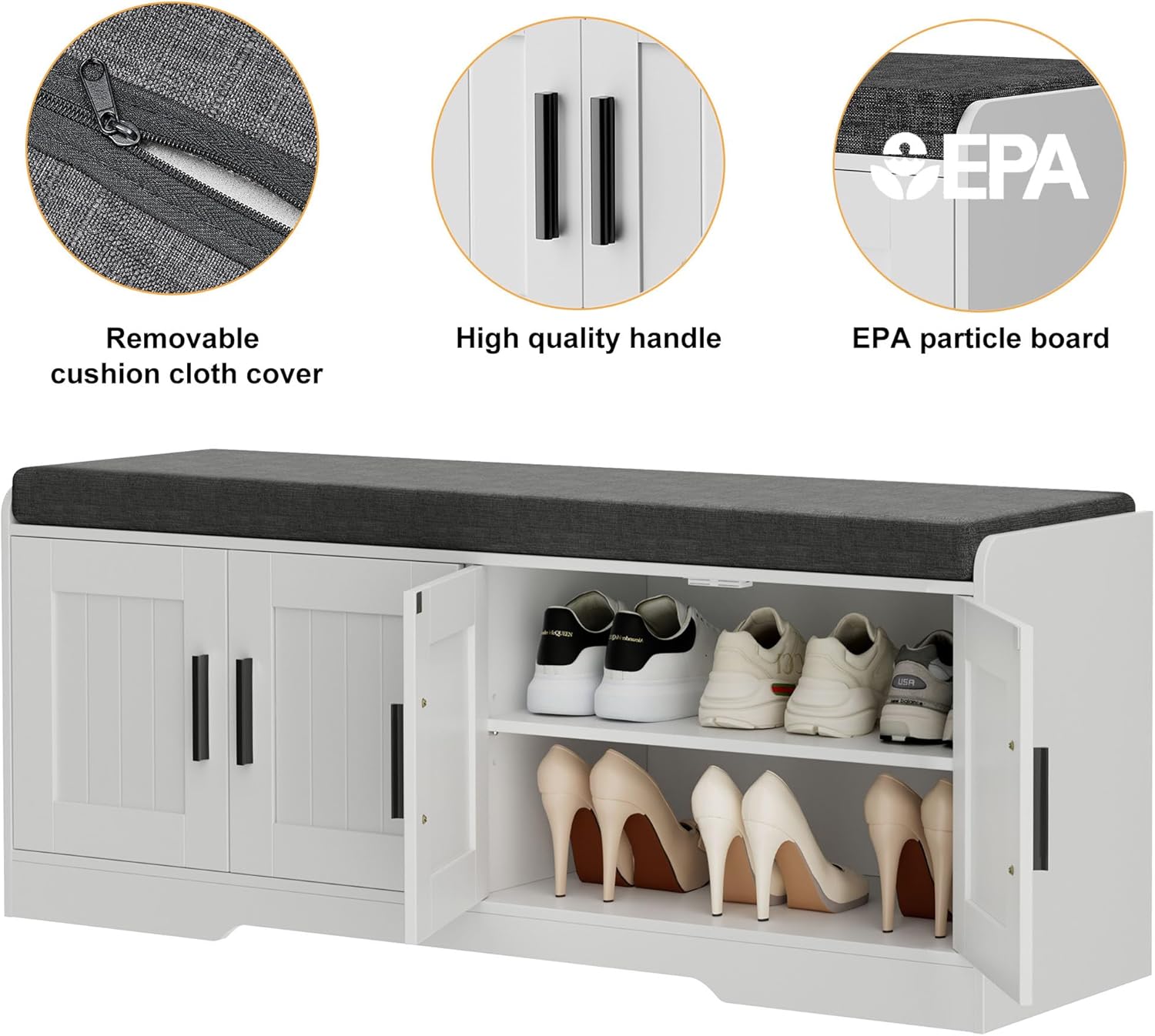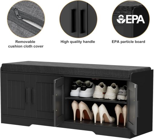 - More Comfortable Shoe Change Cabinet: With a 2-inch thickened padded sponge cushion on the bench top, you can change shoes by sitting on the bench more comfortable without bending down or squatting