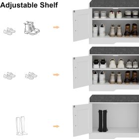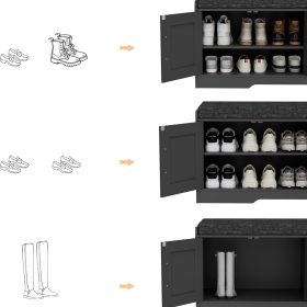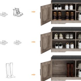 - Keep Your Shoes Organized: The depth of bench is 13.8 inches, which makes it easily to put in your shoes, meanwhile shoes of various heights can be placed by adjusting middle movable boards. The bench doors design ensures not only your privacy, but also a tidy space