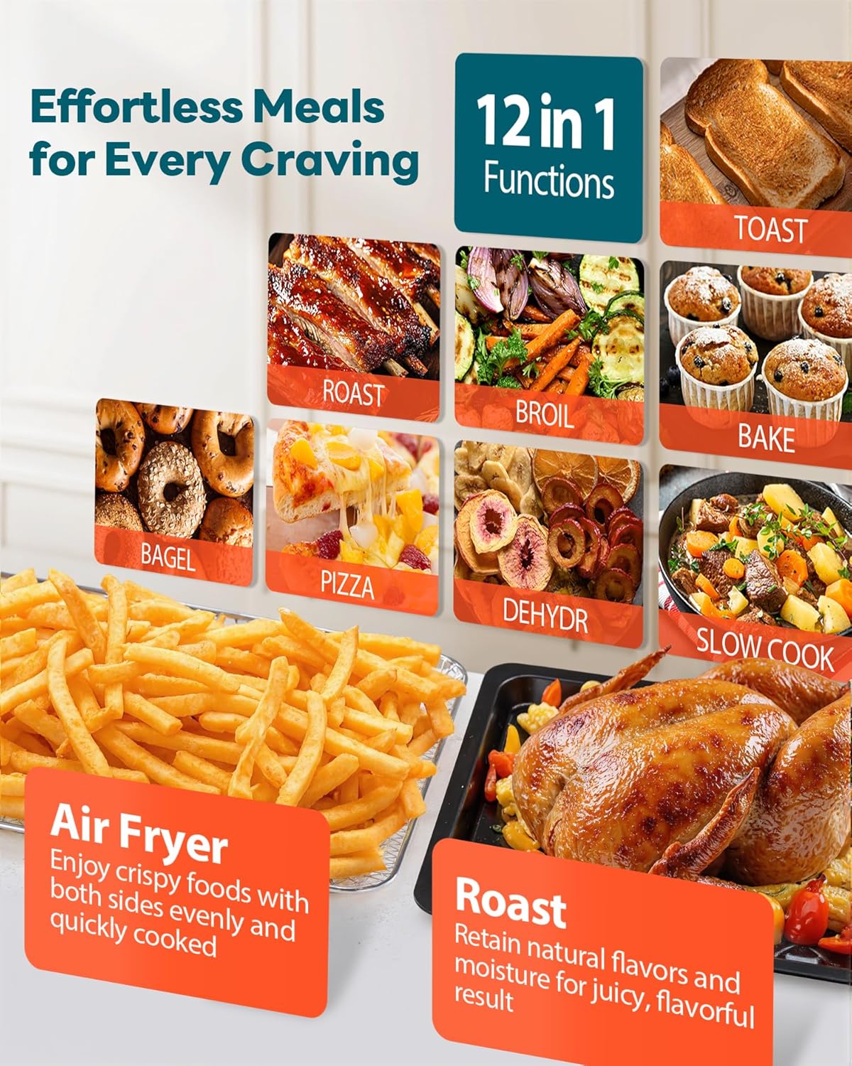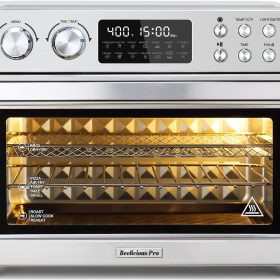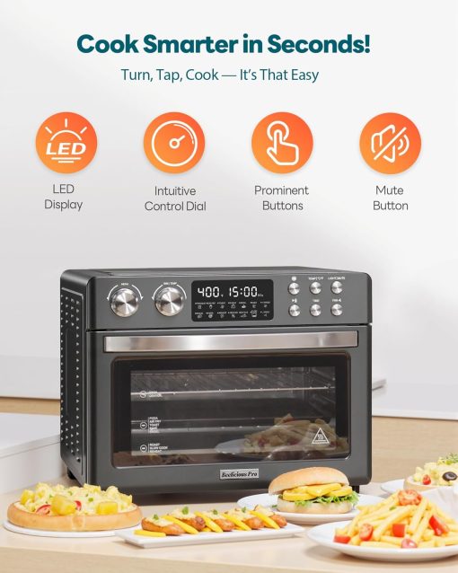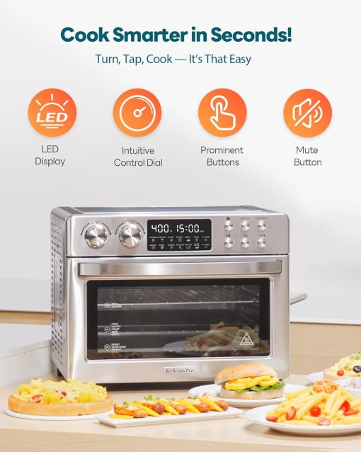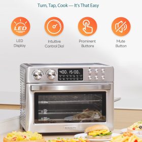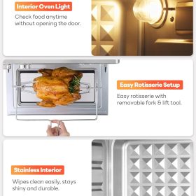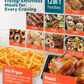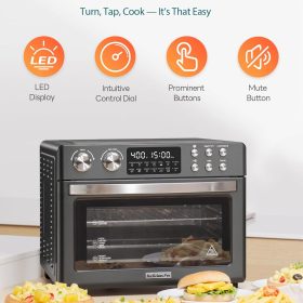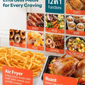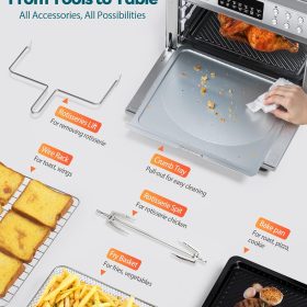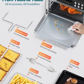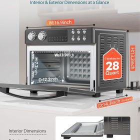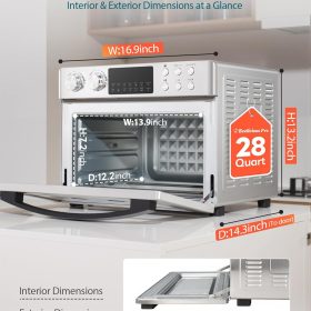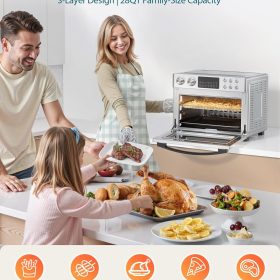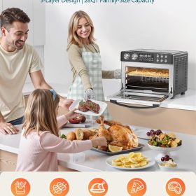 28QT Air Fryer Toaster Oven Combo, Large 12-in-1 Convection Countertop Oven with 3-Layer Cooking, Rotisserie for Chicken, 6 Heating Tubes, Fast Preheat, Fits 11″ Pizza, Full Accessories, Sparkle Black
