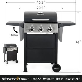 3 Burner BBQ Propane Gas Grill, Stainless Steel 30,000 BTU Patio Garden Barbecue Grill with Two Foldable Shelves