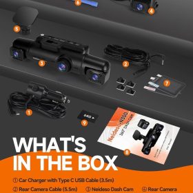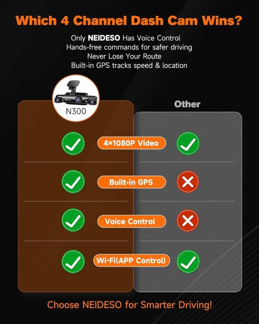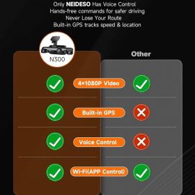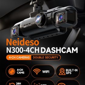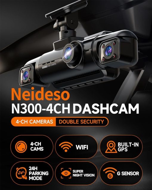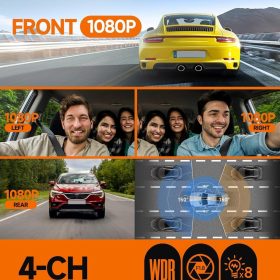 360° Dash Cam 4-Channel FHD 4*1080P Wi-Fi GPS Voice Control Car Camera, Front 2K+1080P*2 Dash Cam, with 64GB SD Card, Night Vision, 24-Hour Parking Mode