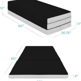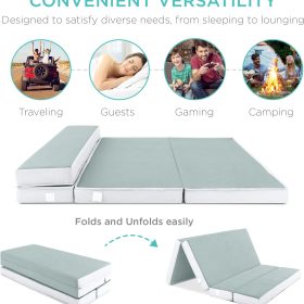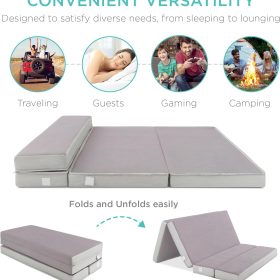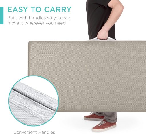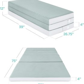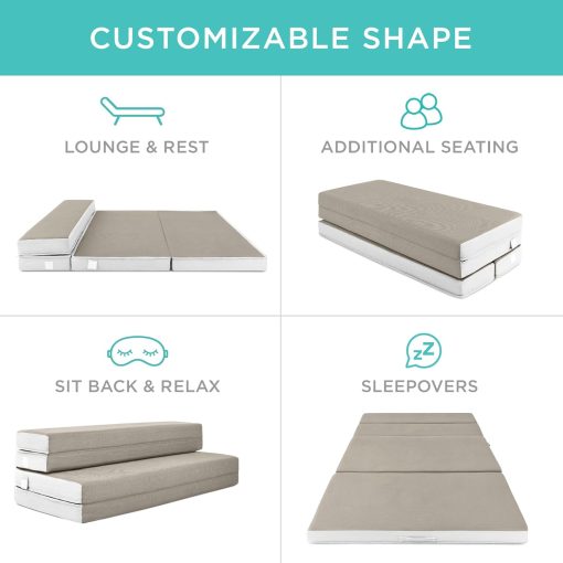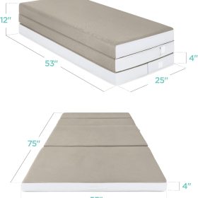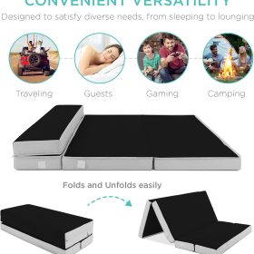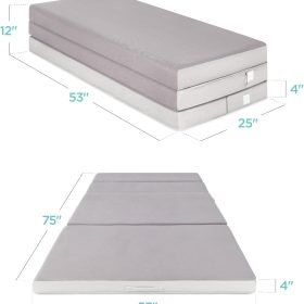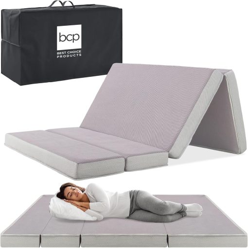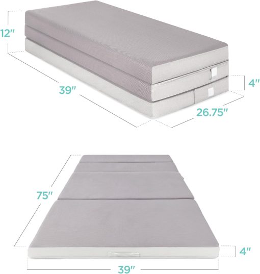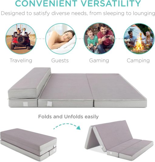 - PORTABLE AND SPACE-SAVING: Simply slip the included carrying case over the portable, tri-fold mattress and zip it up to keep it neat and secure while you travel