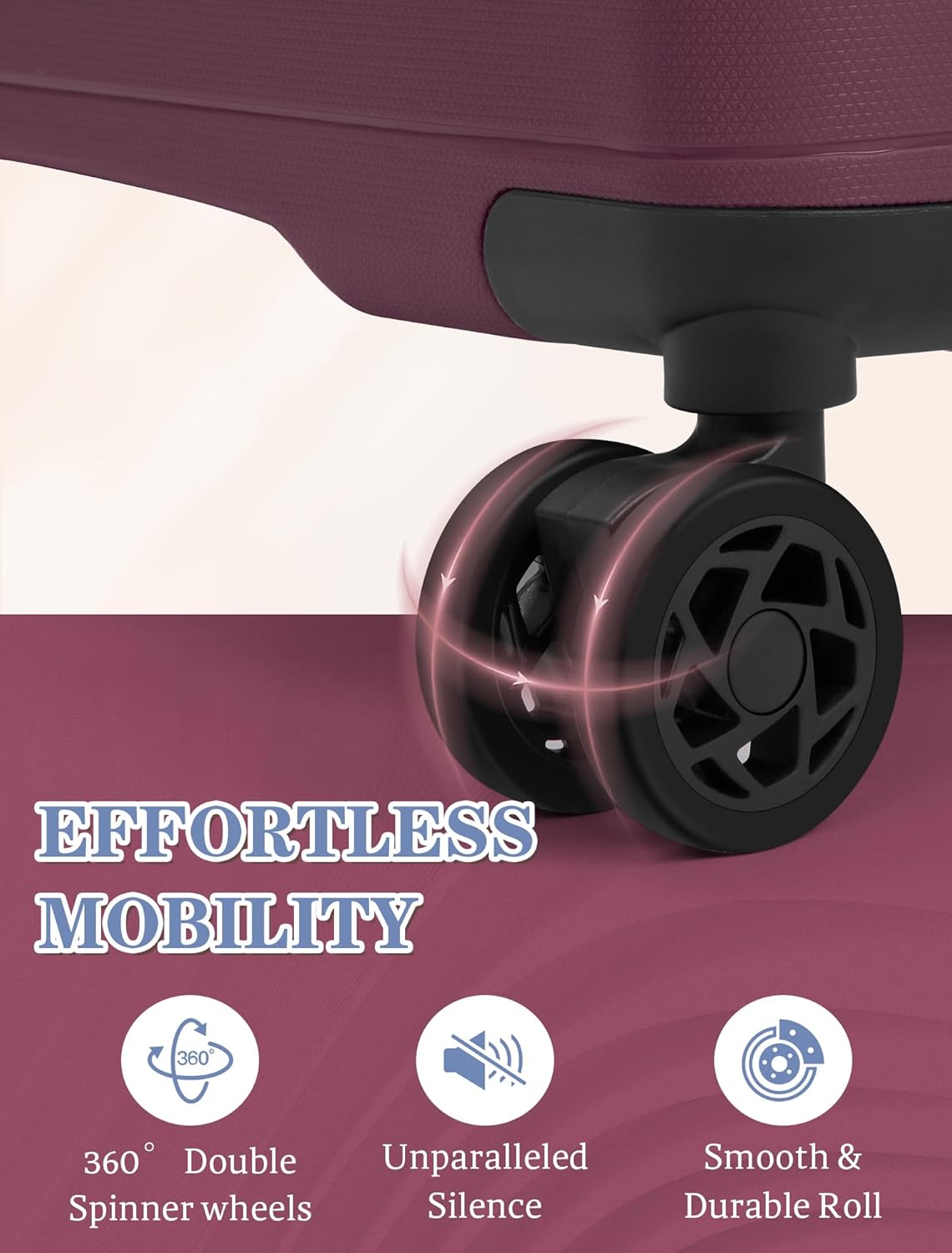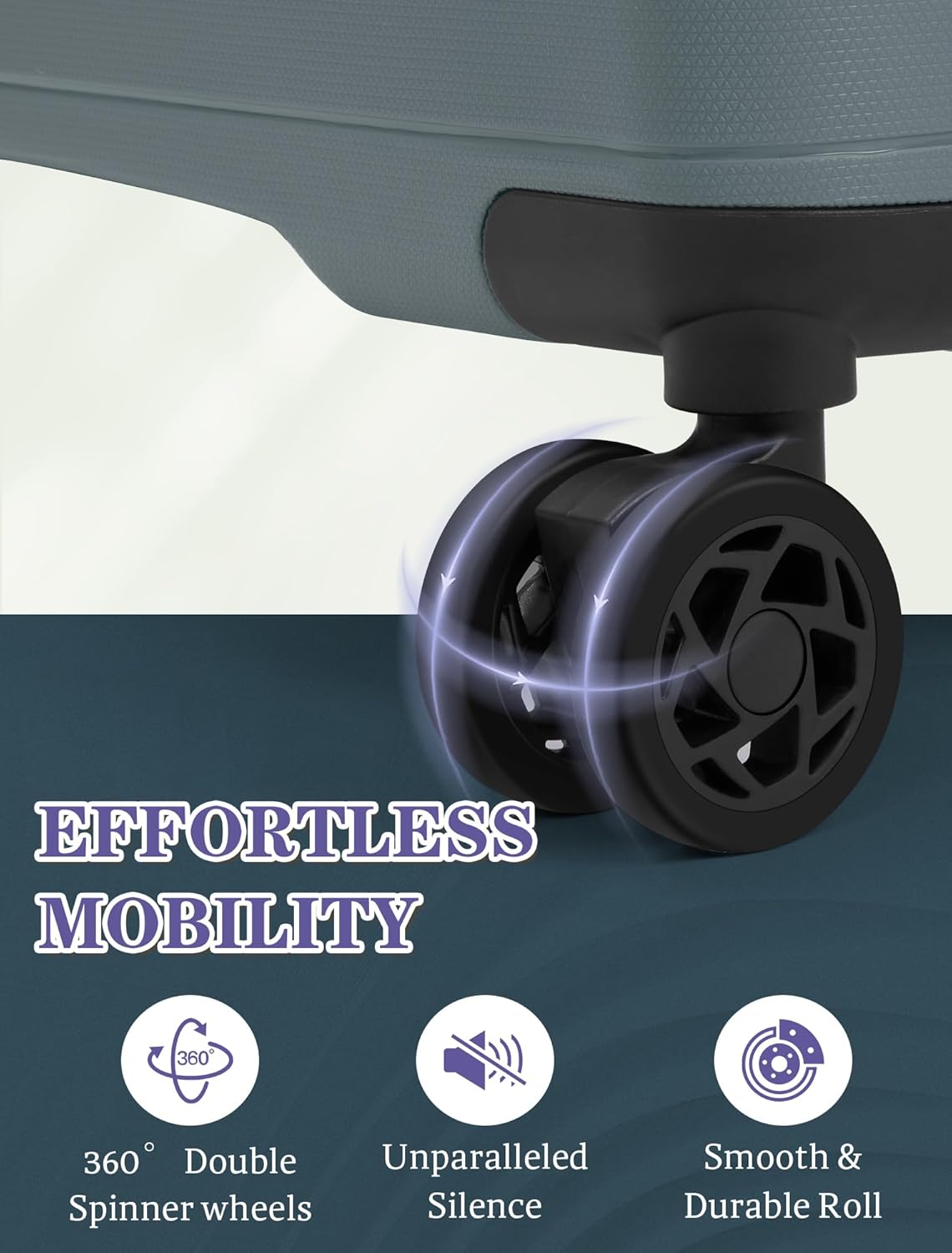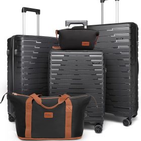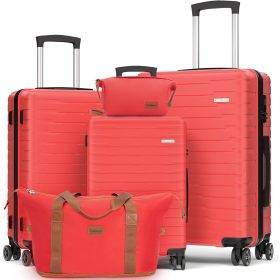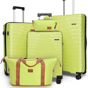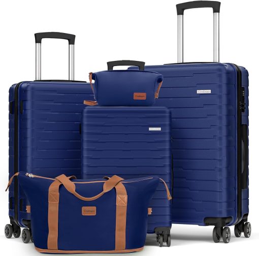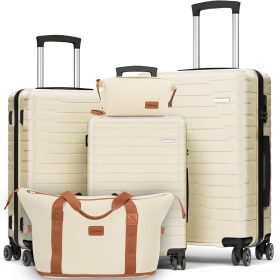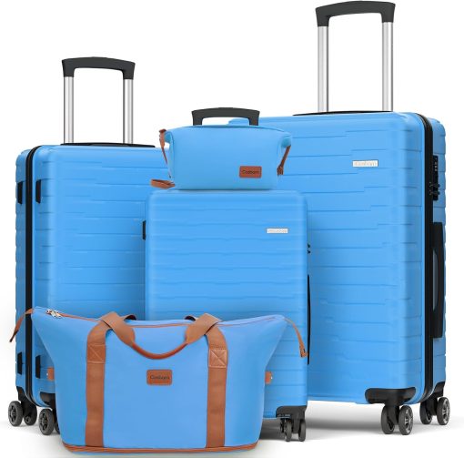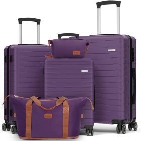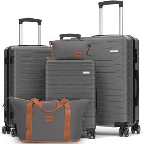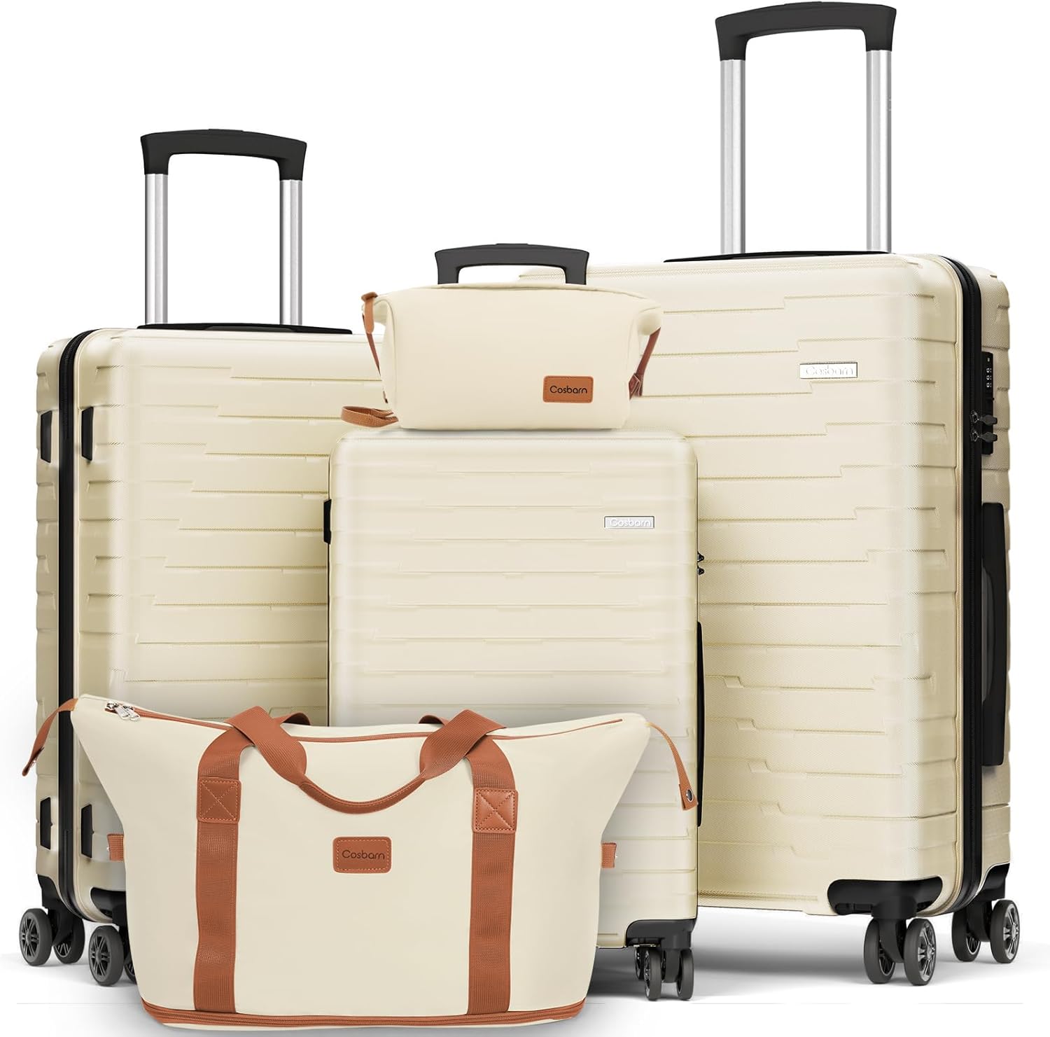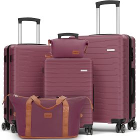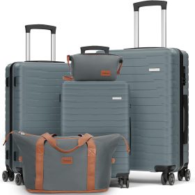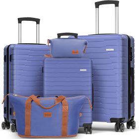 5-piece luggage set with wheels, ABS hardshell suitcase with spinner wheels