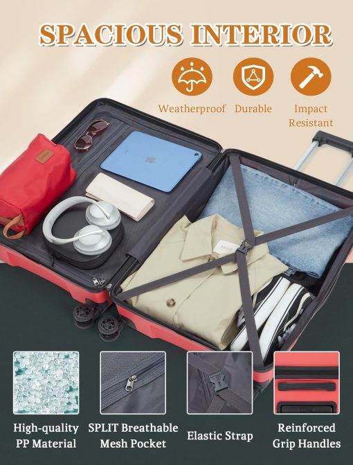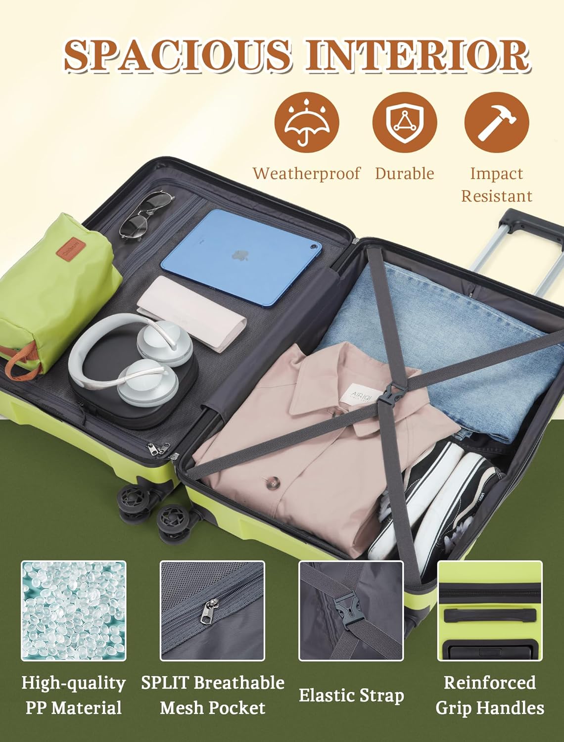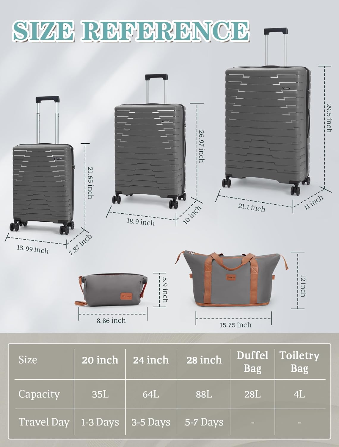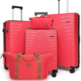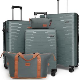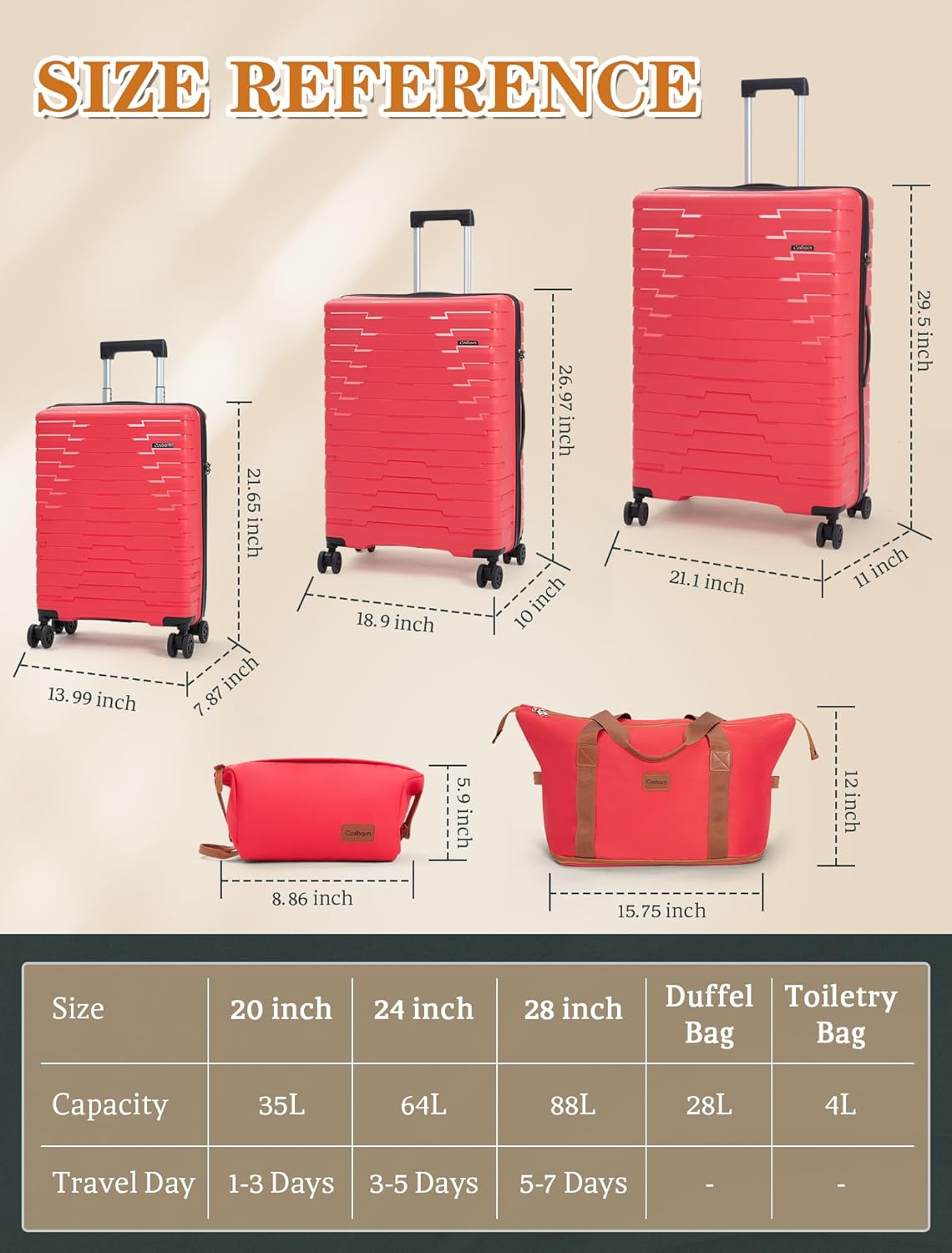 5-piece luggage set with wheels, ABS hardshell suitcase with spinner wheels