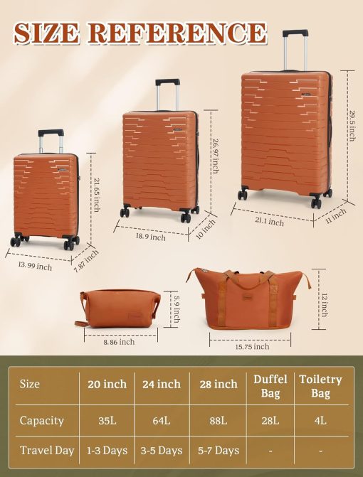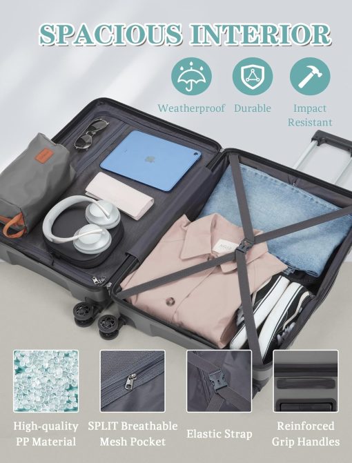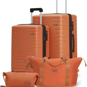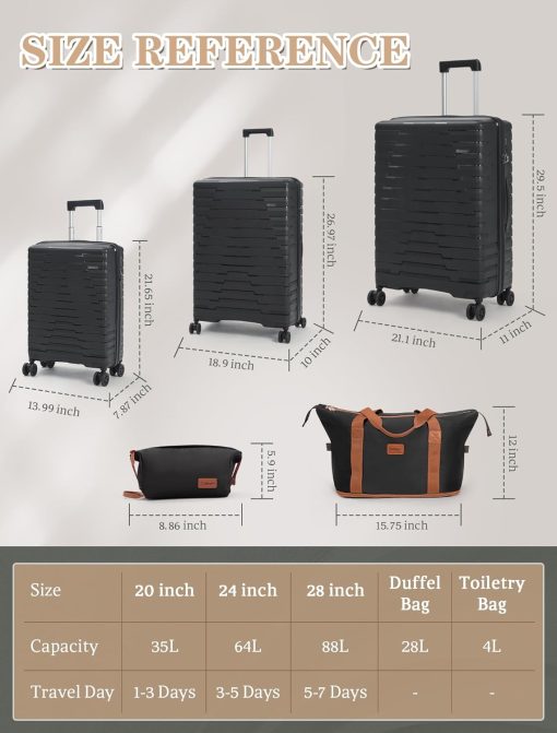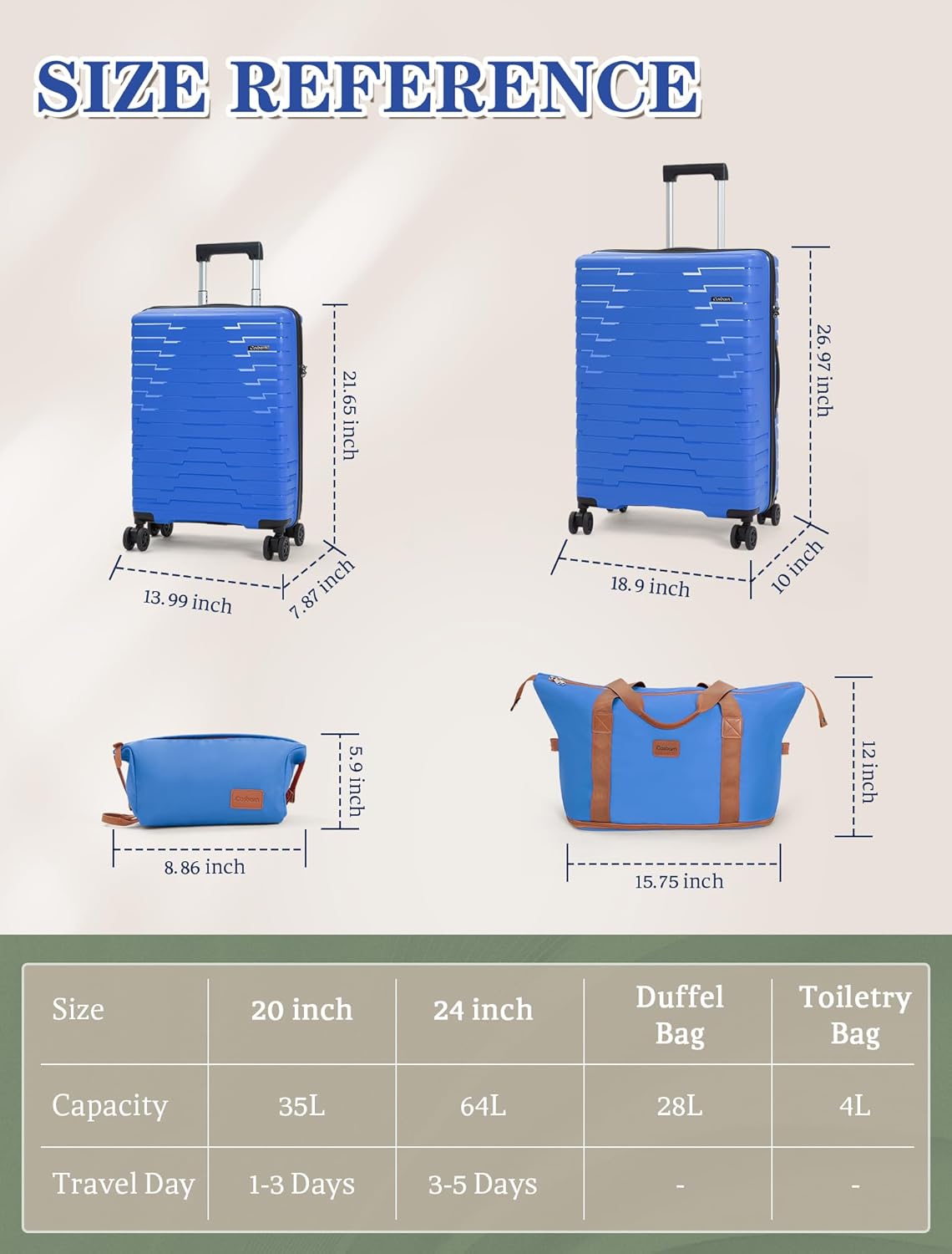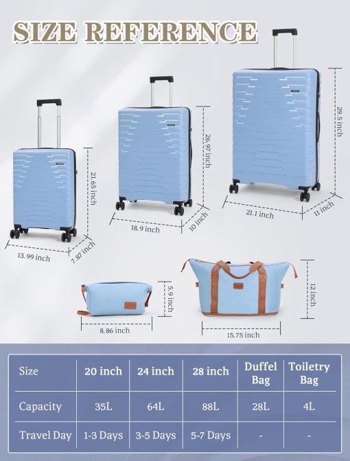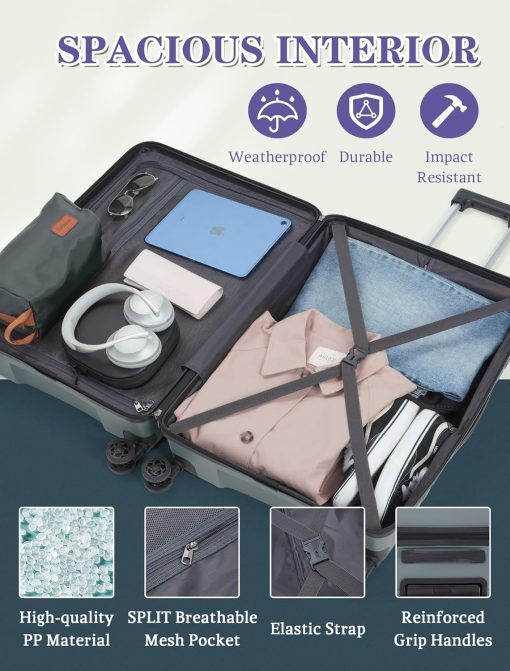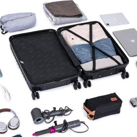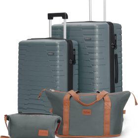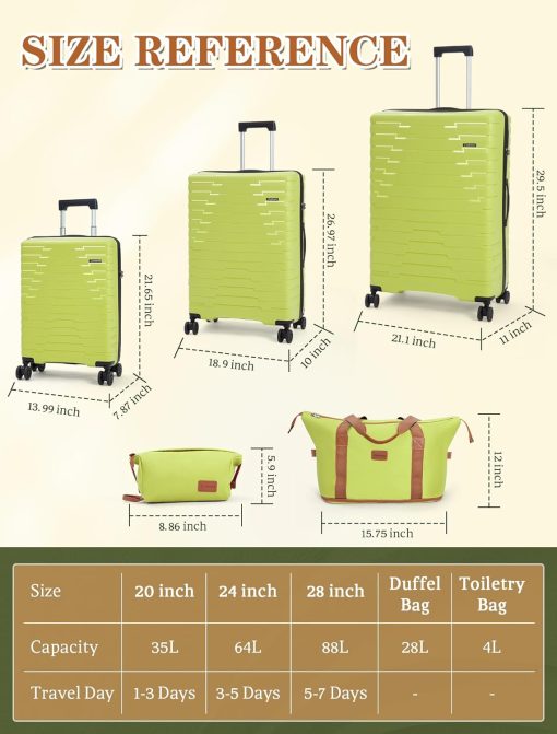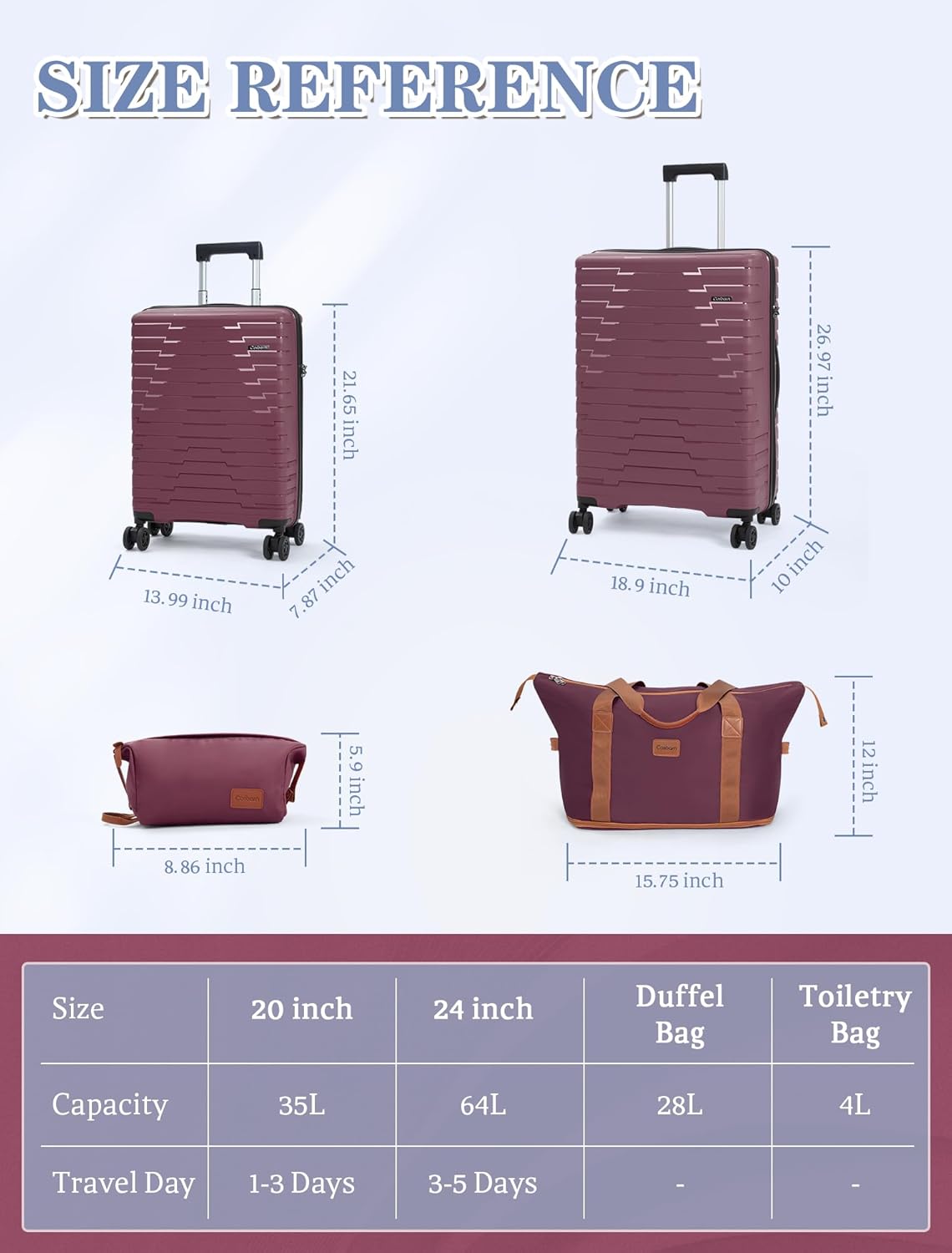 5-piece luggage set with wheels, ABS hardshell suitcase with spinner wheels