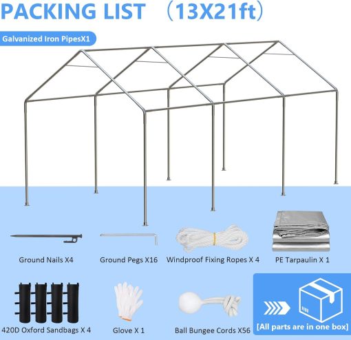 Enhanced stability with specialized stakes: boosts ground grip, ensuring your carport withstands harsh weather without toppling.