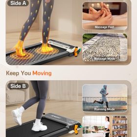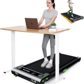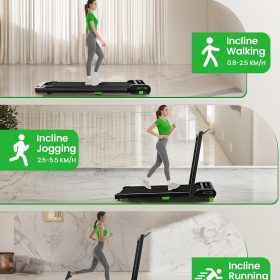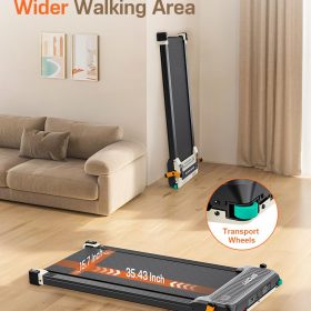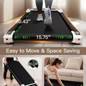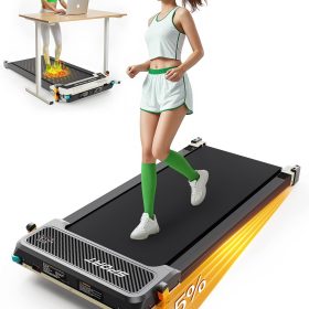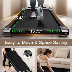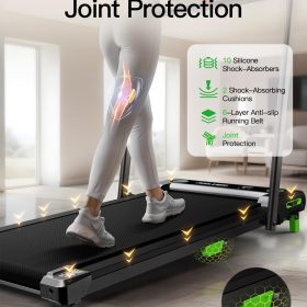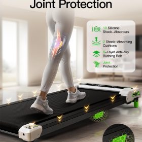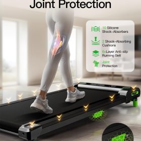 - Anti-Slip Runing Belt & Shock Reduction System: Walking pad treadmill for home is designed walking mat provide a 15.75’*35.43′ spacious running area with a 6-layer anti-slip belt, 10 silicone shock absorbers and 2 shock absorb cushions, it helps to shock absorbing and noise reducing, making your running quieter and more stable, it reduces the impact on your body, ensuring knees, muscles and joints protection during running