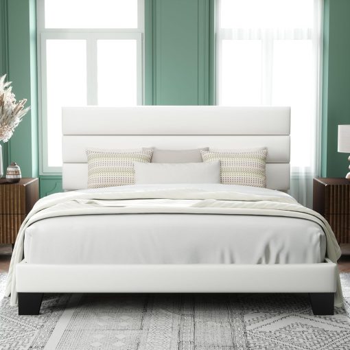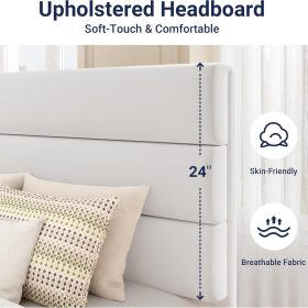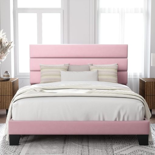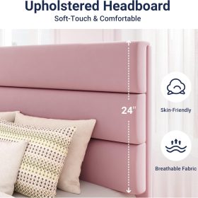 Yes, the headboard is upholstered and made of skin-friendly material.