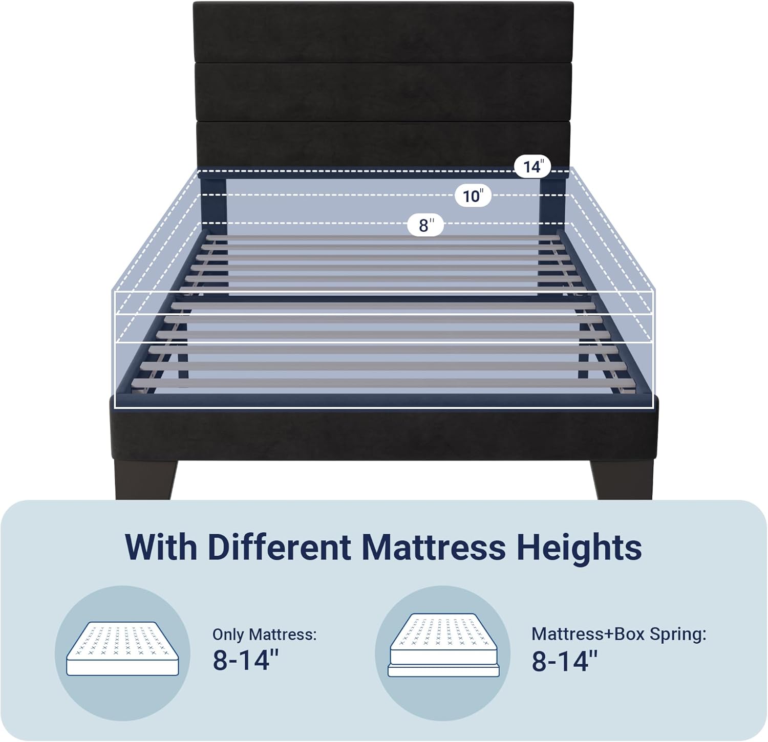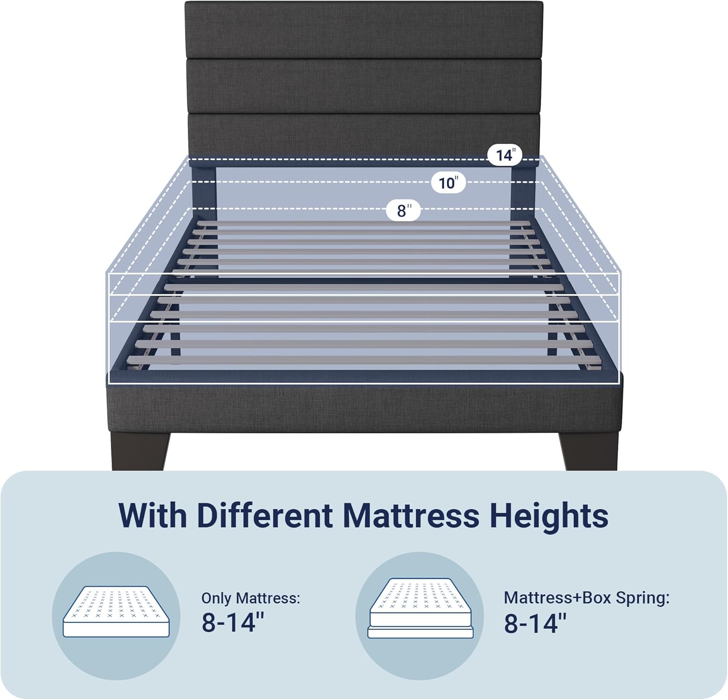 Perfectly adapted to 8-14 inches mattresses.