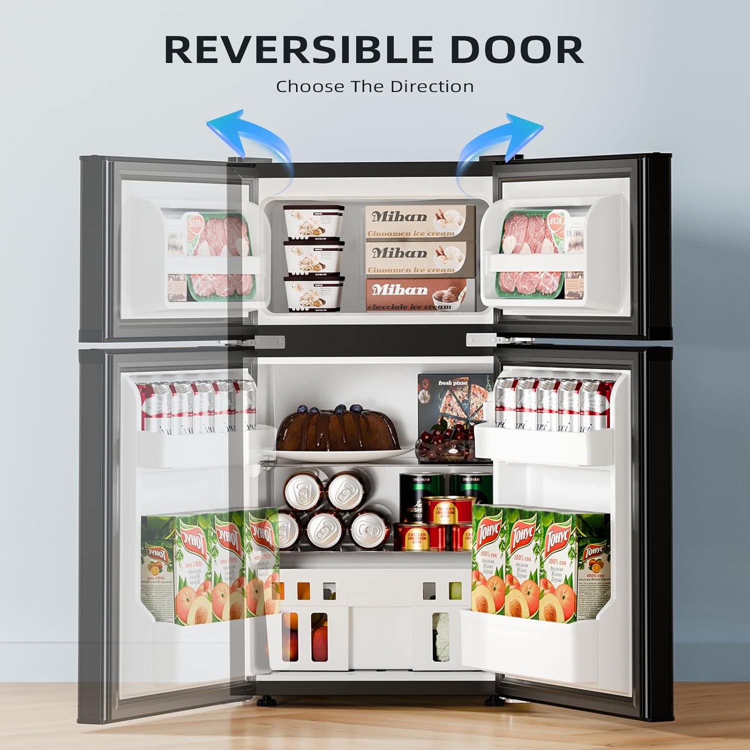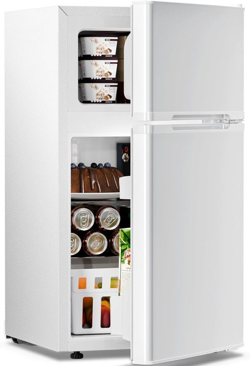 - Multi-Function Storage – compact mini refrigerator combines freezing and refrigerator functions.Compared with single-door small refrigerators, dual-temperature mini fridge have independent refrigerator and freezer areas, which can better classify and store different types of food