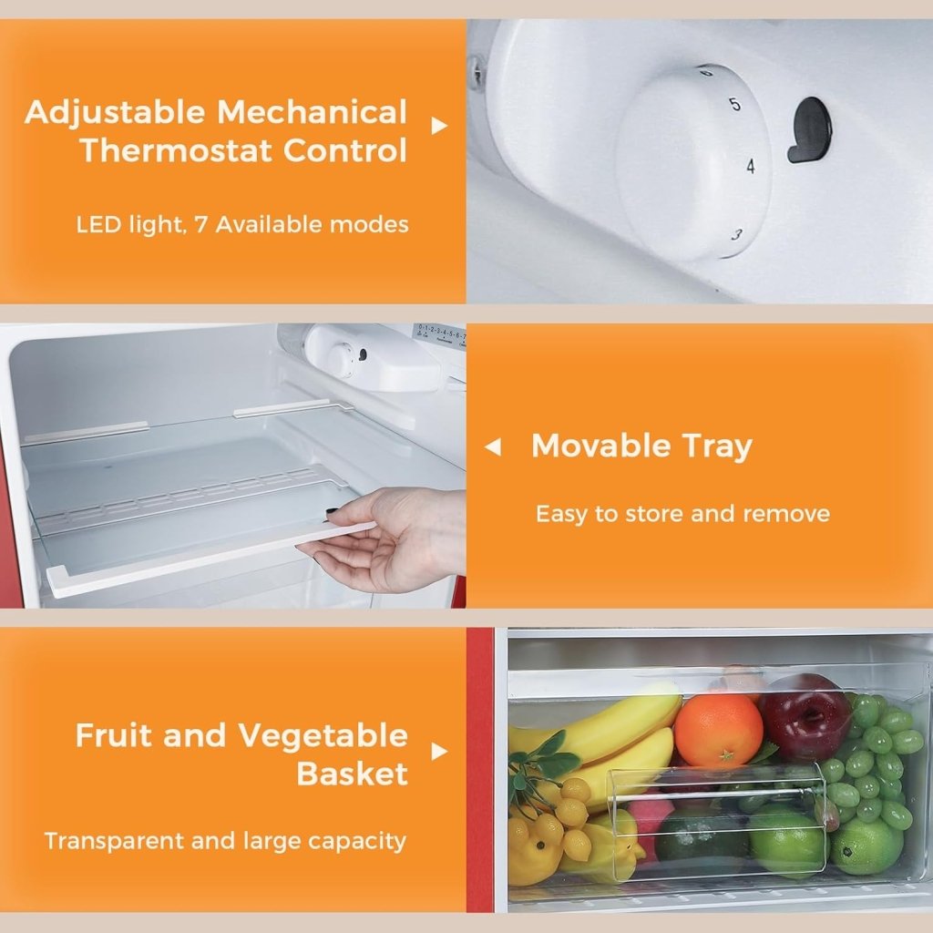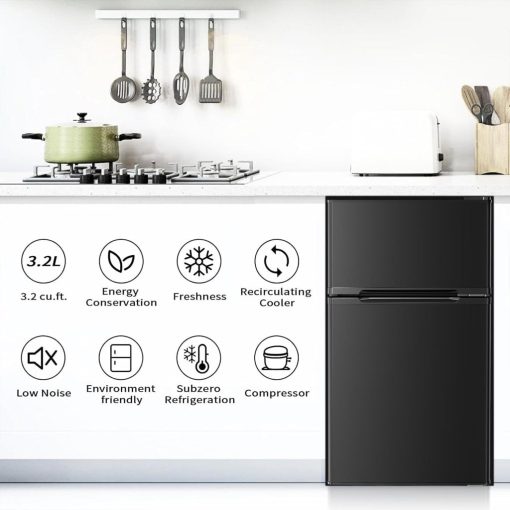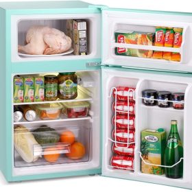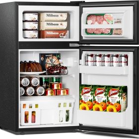 - Multi-Function Storage-Double Door Design, freezer compartment can be used for storing frozen foods or making Ice cubes. The door offers a spot for your favorite canned beverages.There are fresh fruits you like to eat in the drawer, sweet ice cream in the frozen area.