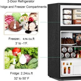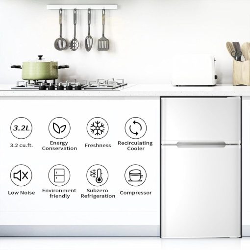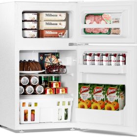 - Classic Design -This fridge is designed with a sleek black and white exterior that adds a classy touch. It can match any of your furniture,better for the home, dorm rooms, small office spaces, garages, workshops,and more.