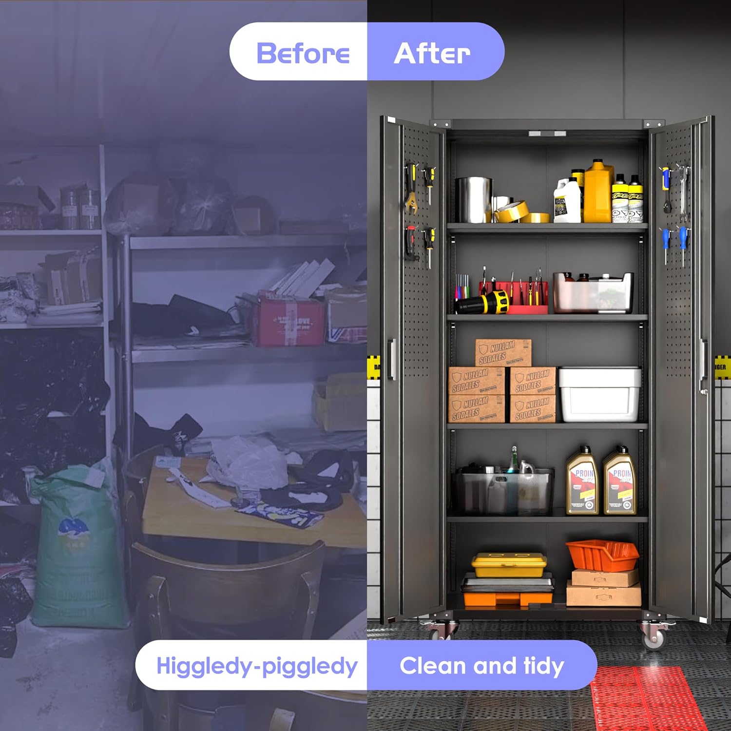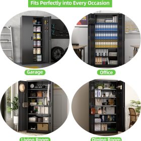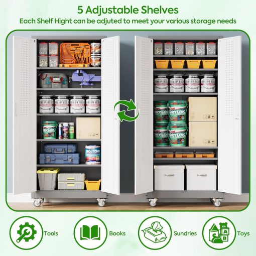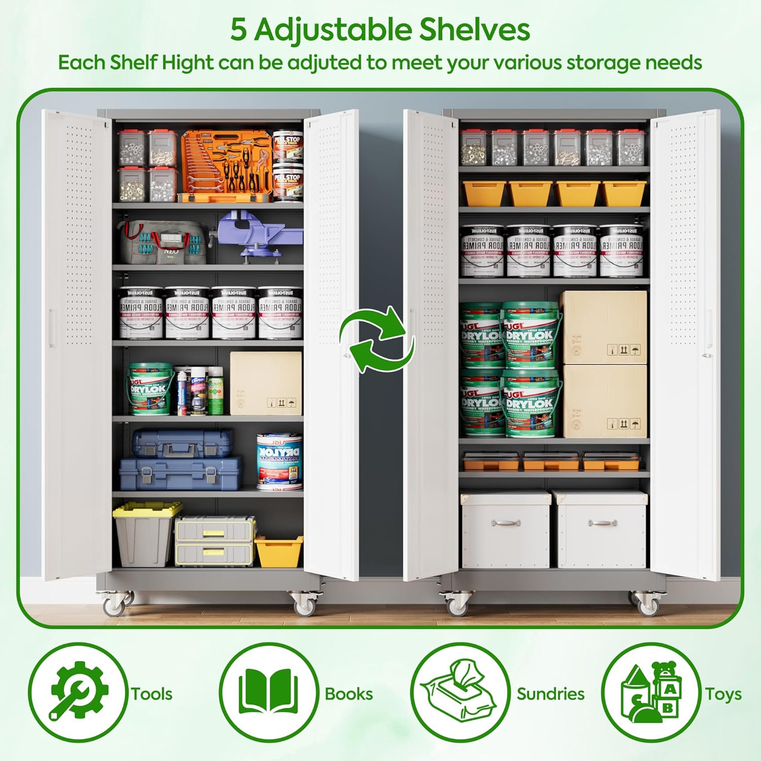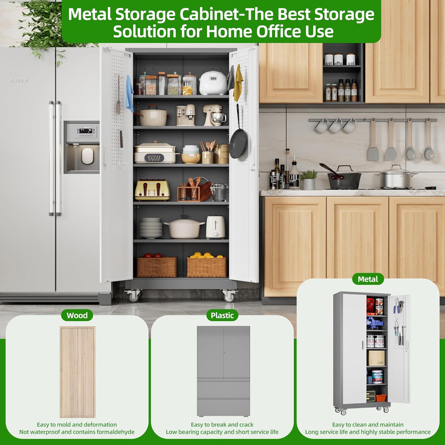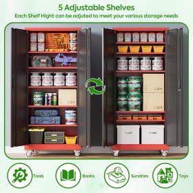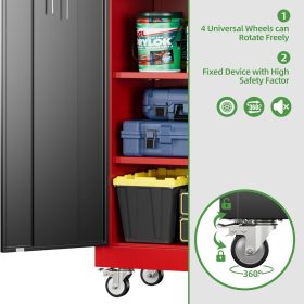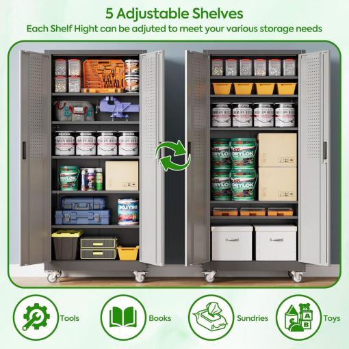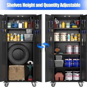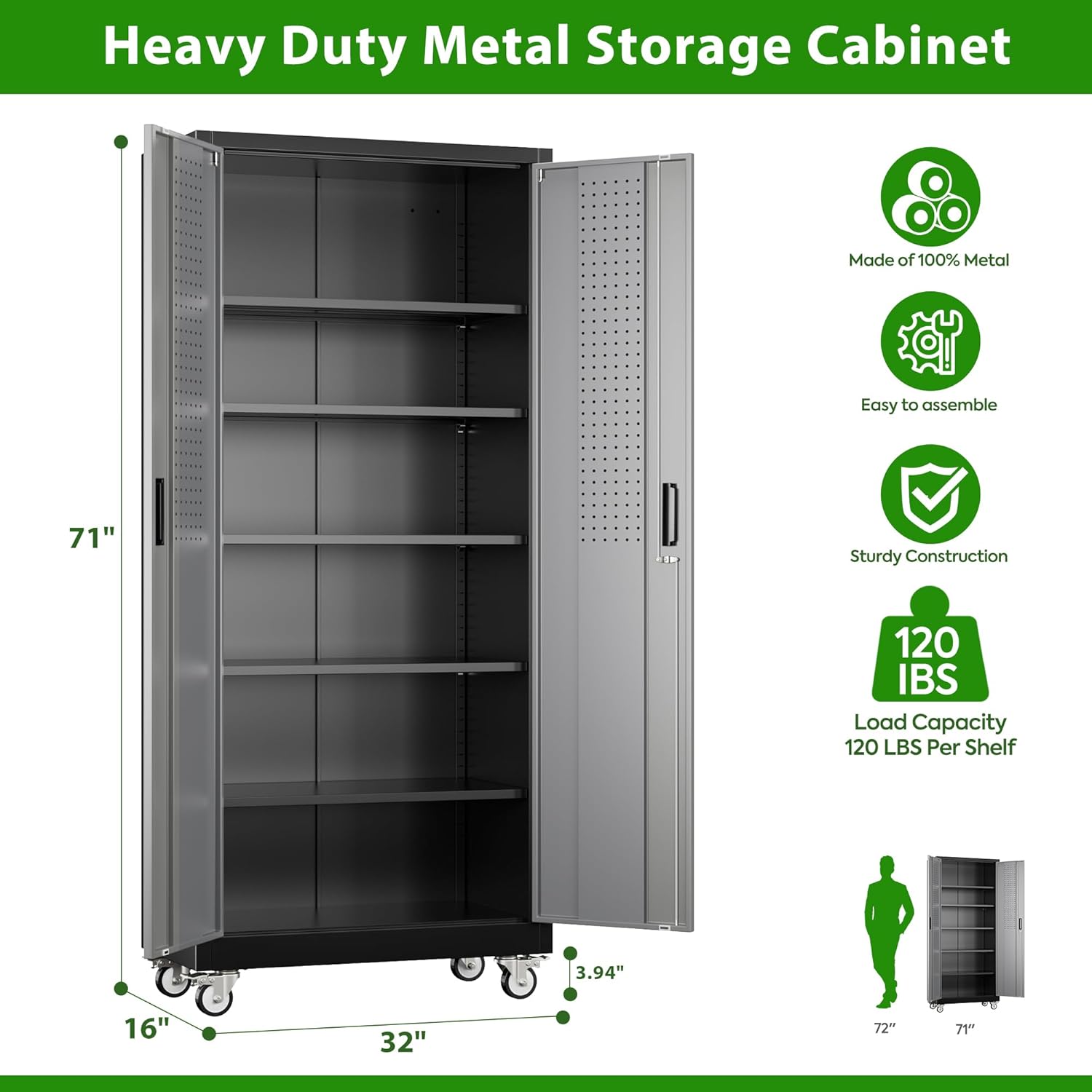 Aobabo 73”H Metal Garage Storage Cabinet with Wheels,Steel Cabinets with 2 Doors and 4 Adjustable Shelves for Home Office,Required Assembly,Black
