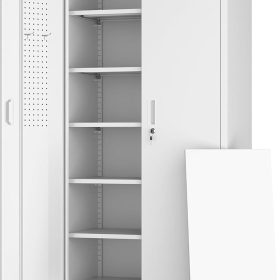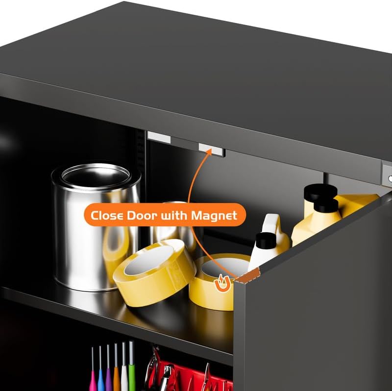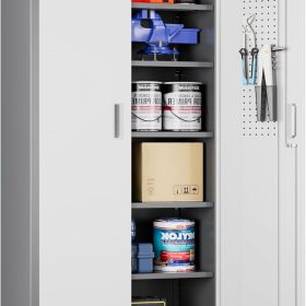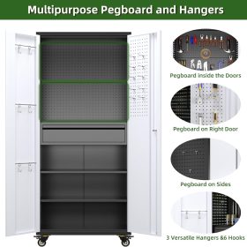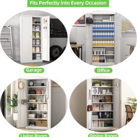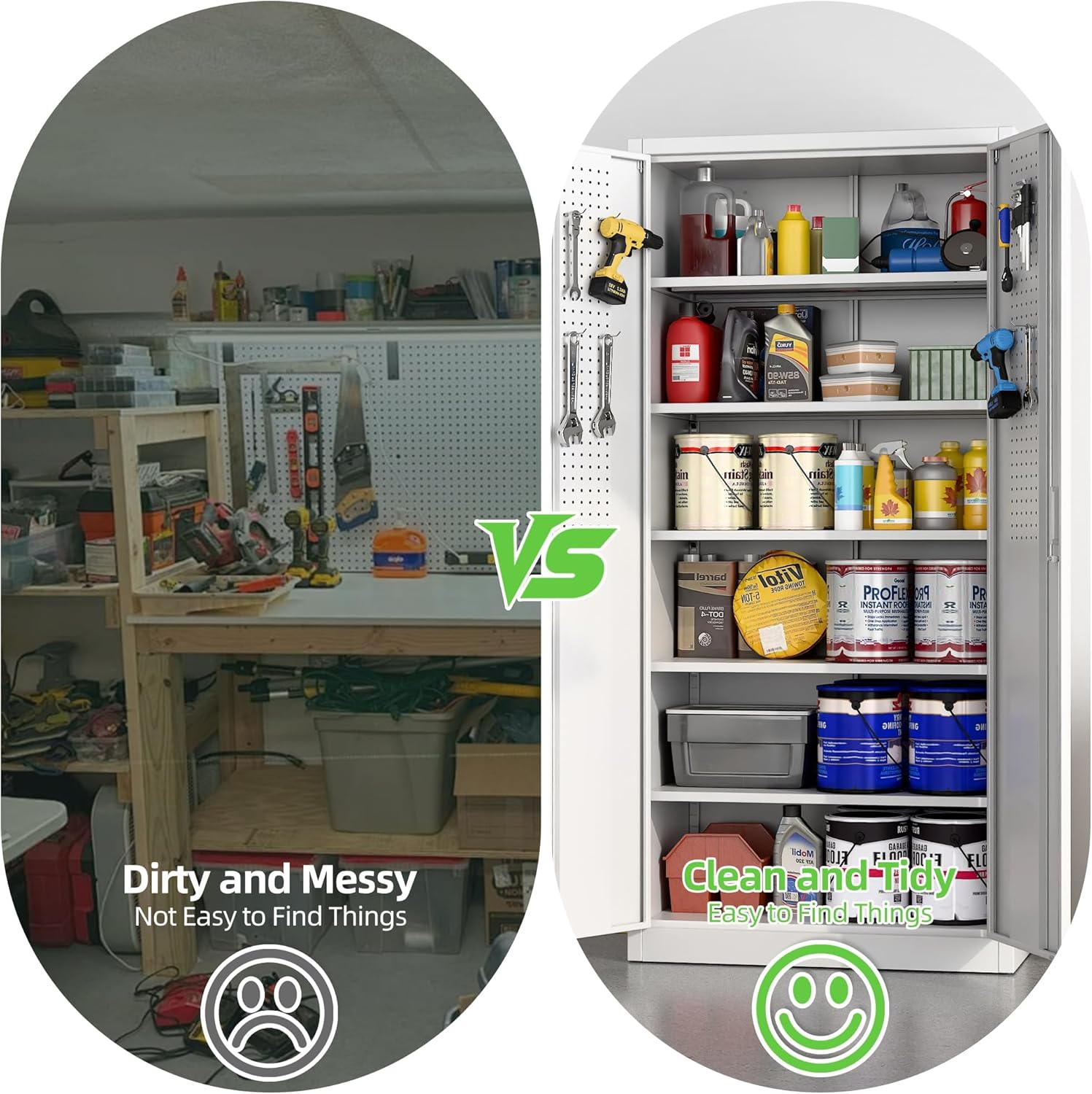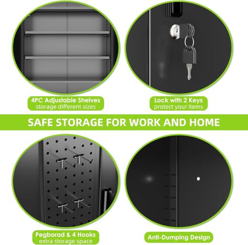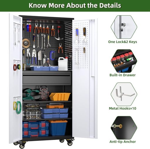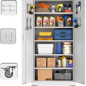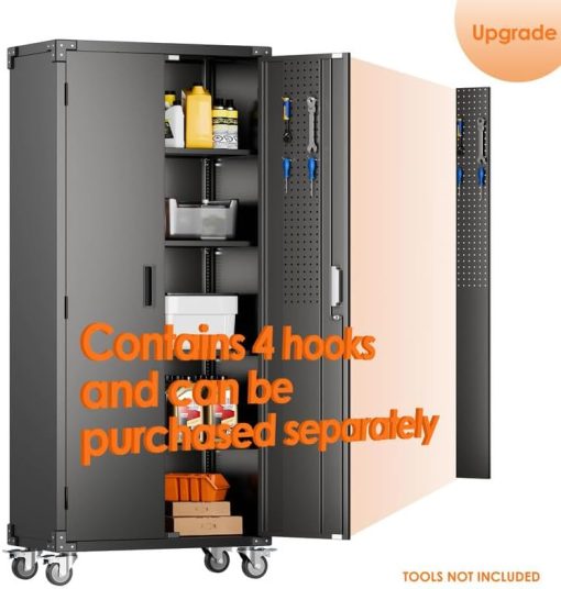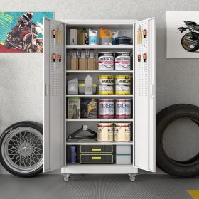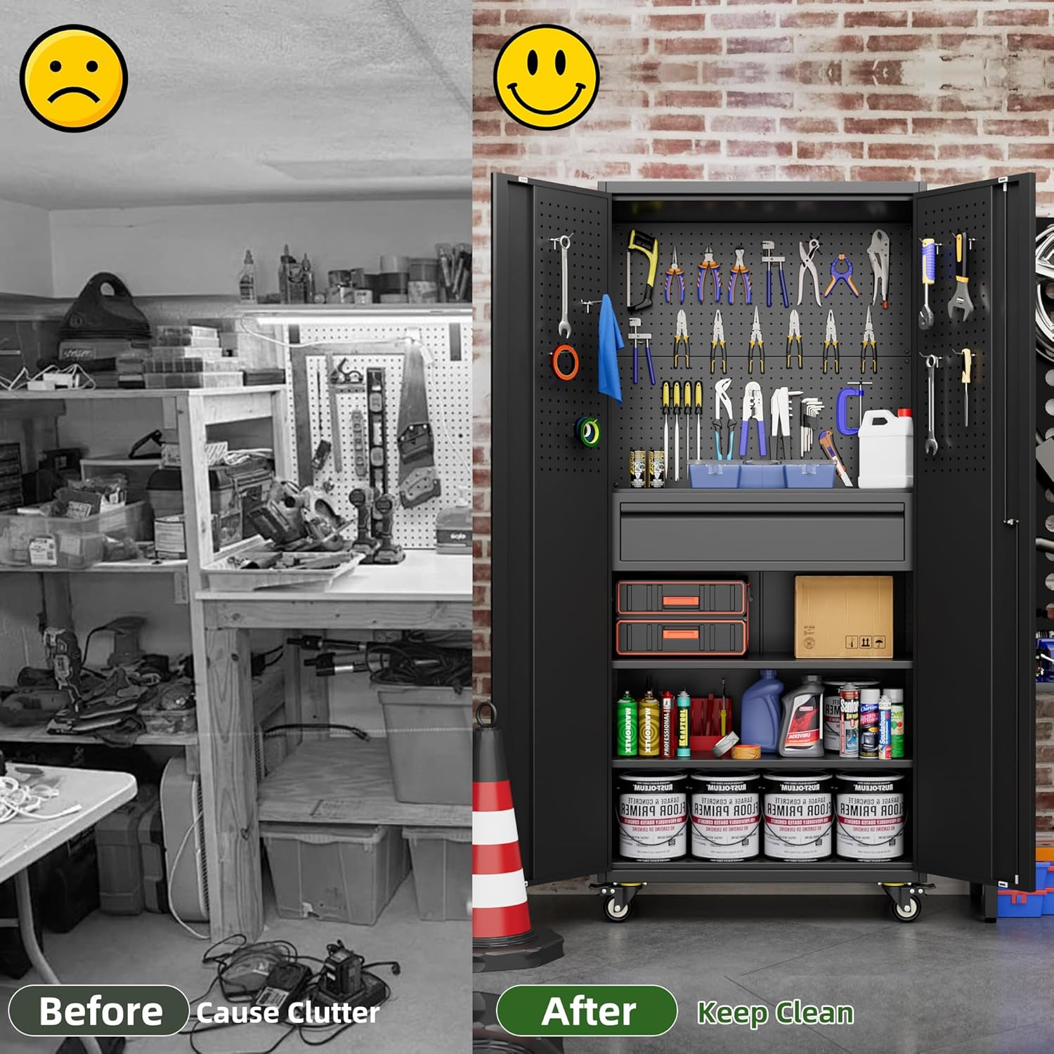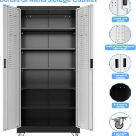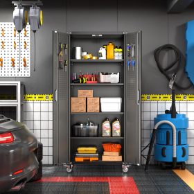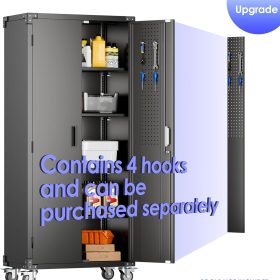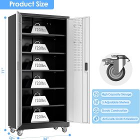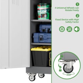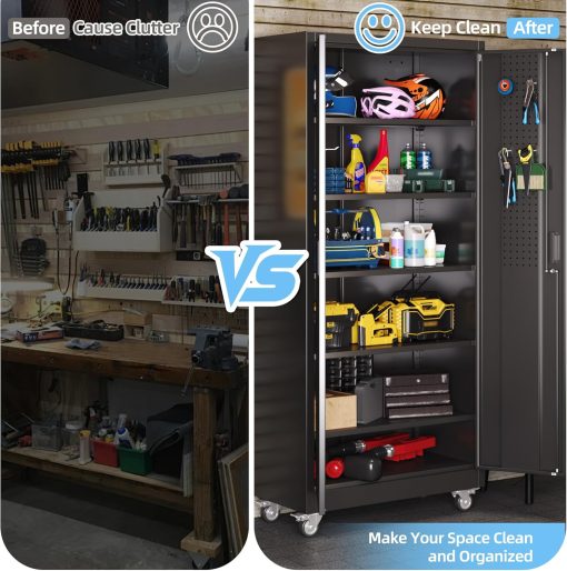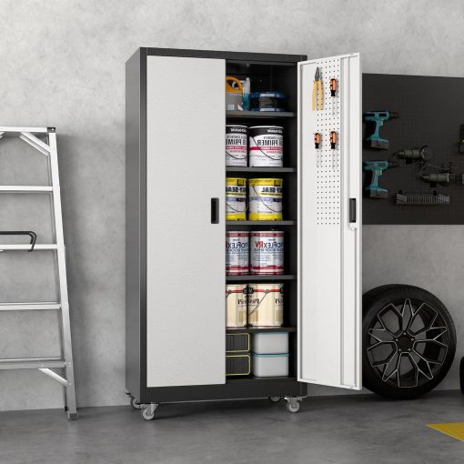 Aobabo 73”H Metal Garage Storage Cabinet with Wheels,Steel Cabinets with 2 Doors and 4 Adjustable Shelves for Home Office,Required Assembly,Black