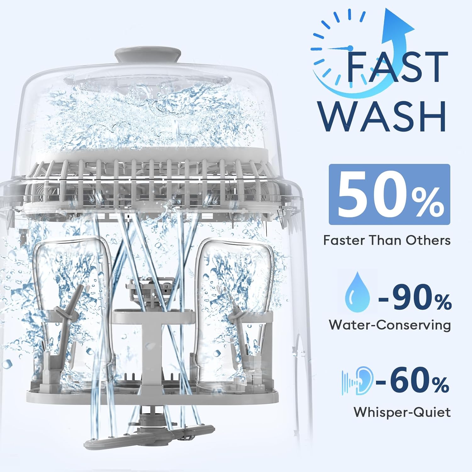 - More Time with Baby: Rapid wash and drying cycle is approximately 74 mins, Normal wash and drying cycle is 84 mins. You sit it on counter and leave the drain pipe in the sink, fill it by putting water in a tank ( filtered or distilled water) and press a button. Complete all tasks in 1.4 hours. You more time to relax or play with your baby