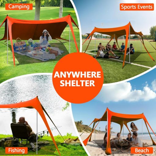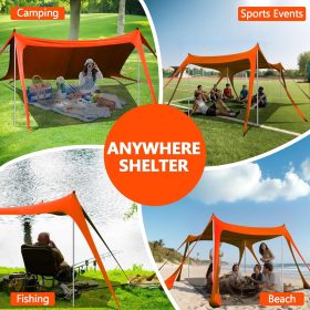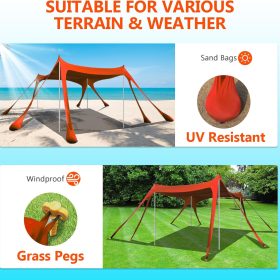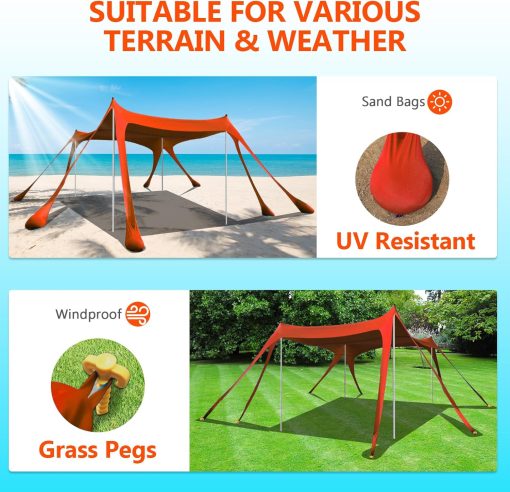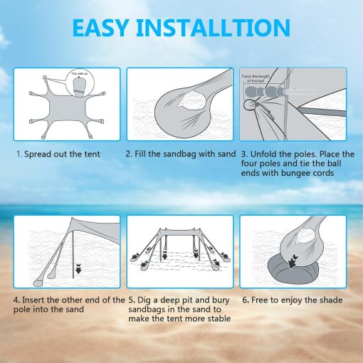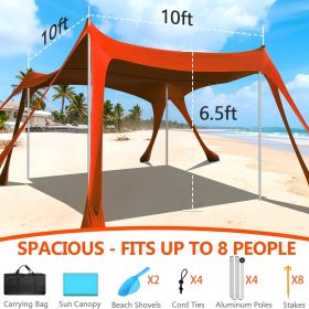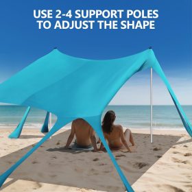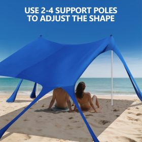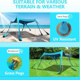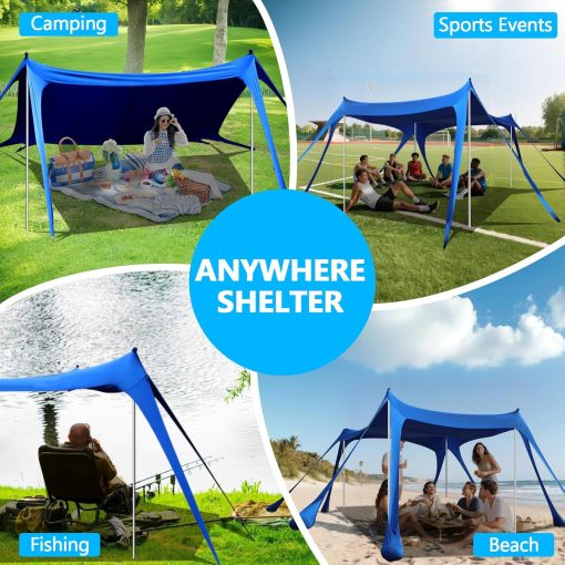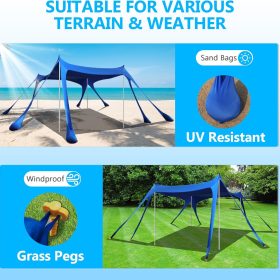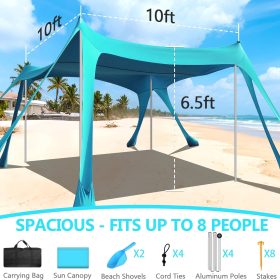 Beach Tent Sun Shelter, 10 x 10 FT Beach Canopy Tent Sun Shade Heavy Duty, UPF50+ Beach Tent Canopy with 8 Sandbags & 4 Stability Poles, Outdoor Beach Shade Canopy for Camping and Fishing, Blue