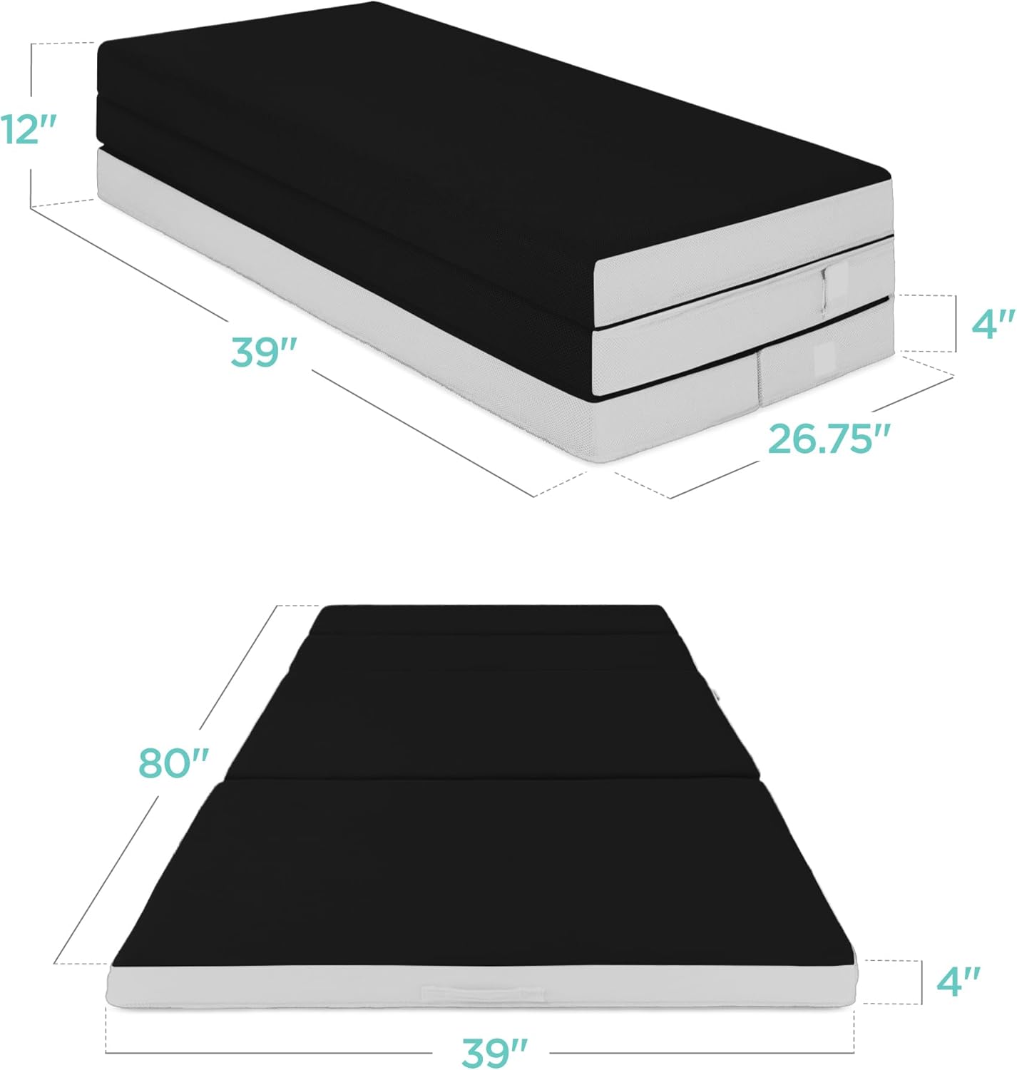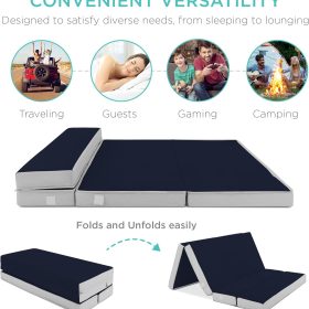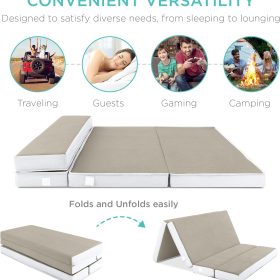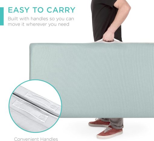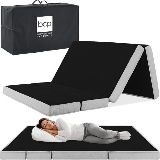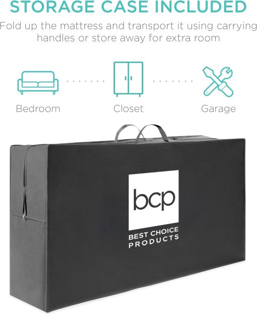 - PORTABLE AND SPACE-SAVING: Simply slip the included carrying case over the portable, tri-fold mattress and zip it up to keep it neat and secure while you travel