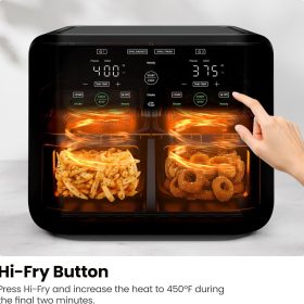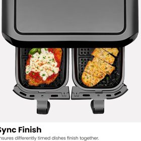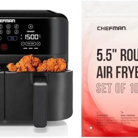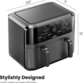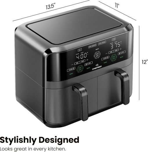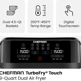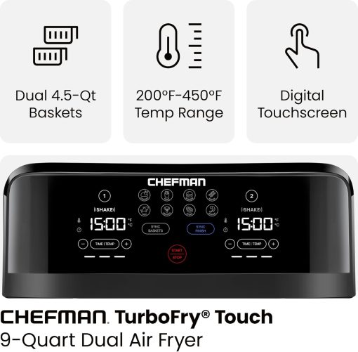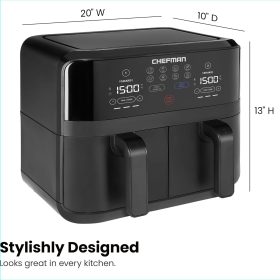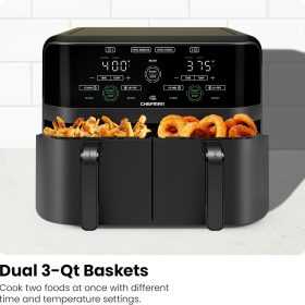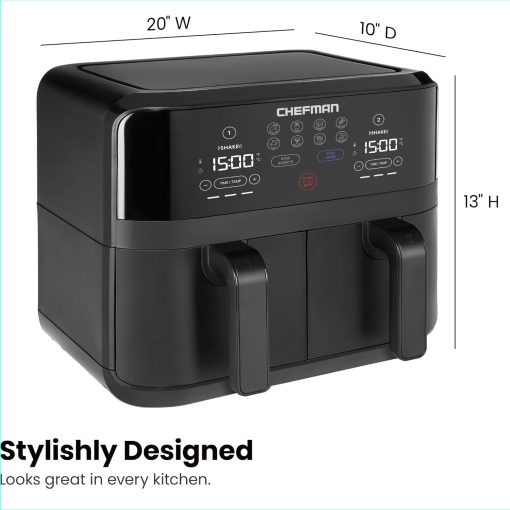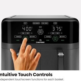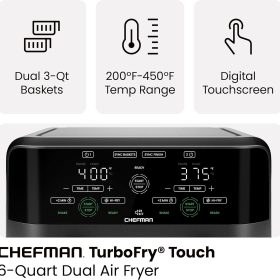 Chefman 6 Quart Dual Basket Air Fryer – Digital Touchscreen, Smart Sync Finish, Hi-Fry, Auto Shutoff, 2 Independent 3QT Nonstick Dishwasher-Safe Frying Baskets – Digital Double Air Fryer – Black