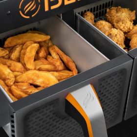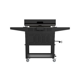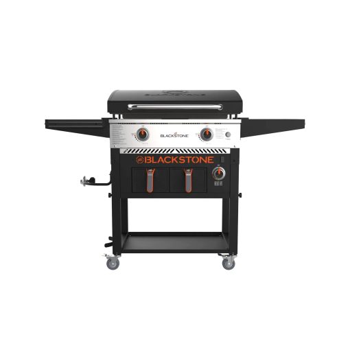 With the Blackstone 2-Burner 28′ Griddle with Electric Air Fryer and Hood, you can do it all: bake, sear, roast, sauté, and air fry. This griddle combines the simplicity and ease of air frying with the hands-on art of griddling for a satisfying blend of styles. 524 Square inches of cooking space combine with 2 quarts air frying capacity for all the space you need to cook meals for large groups of people. Two side shelves, a magnetic strip for griddling accessories, and tool hooks provide precious prep and storage space. A hood retains heat and reduces splatter while patented rear grease management controls the mess on the griddle surface. With everything you can do on this griddle, you’ll be drooling before your dinner is done. This propane and plug powered Blackstone is sure to bring lots of delicious meals to the table for years to come.