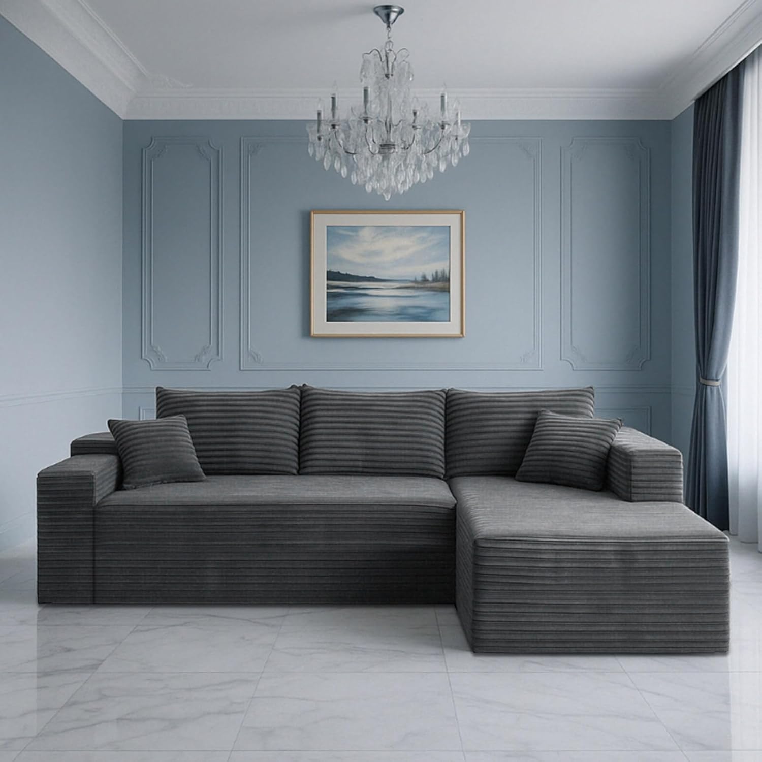 - 【Comfy Chaise Couch】Bask in unparalleled luxury with Metokeg interchangeable sofa collection, which embodies a spacious, cloud-like seating sensation. Revel in supreme ease with our sectional sofa with 68” lounge chaise, meticulously crafted from high-density sponge.
