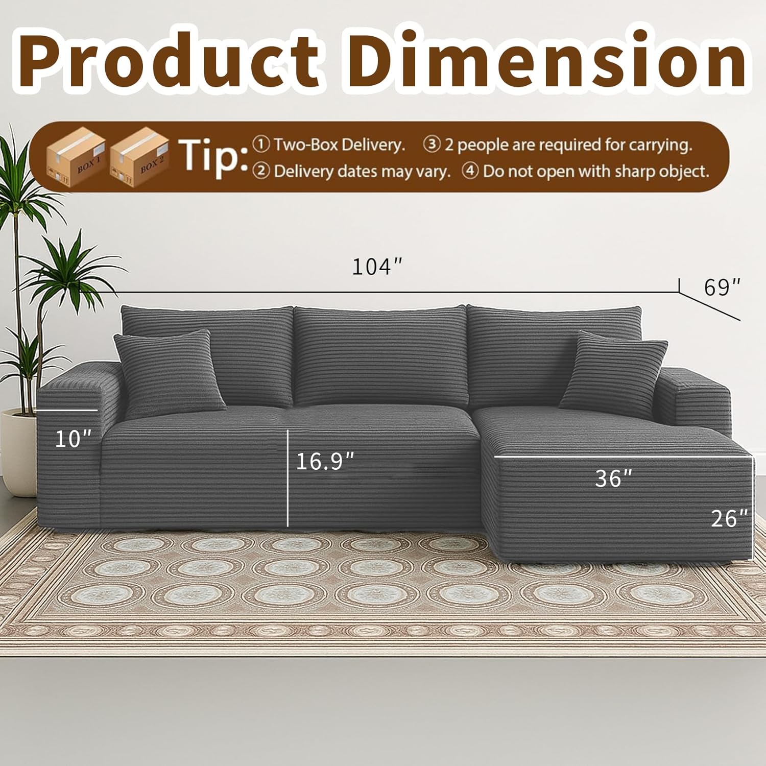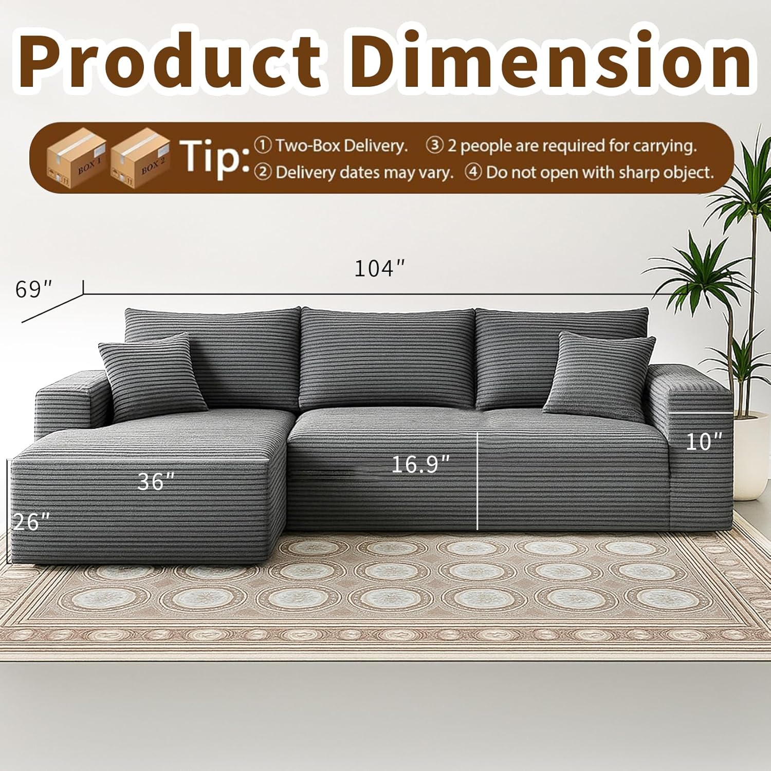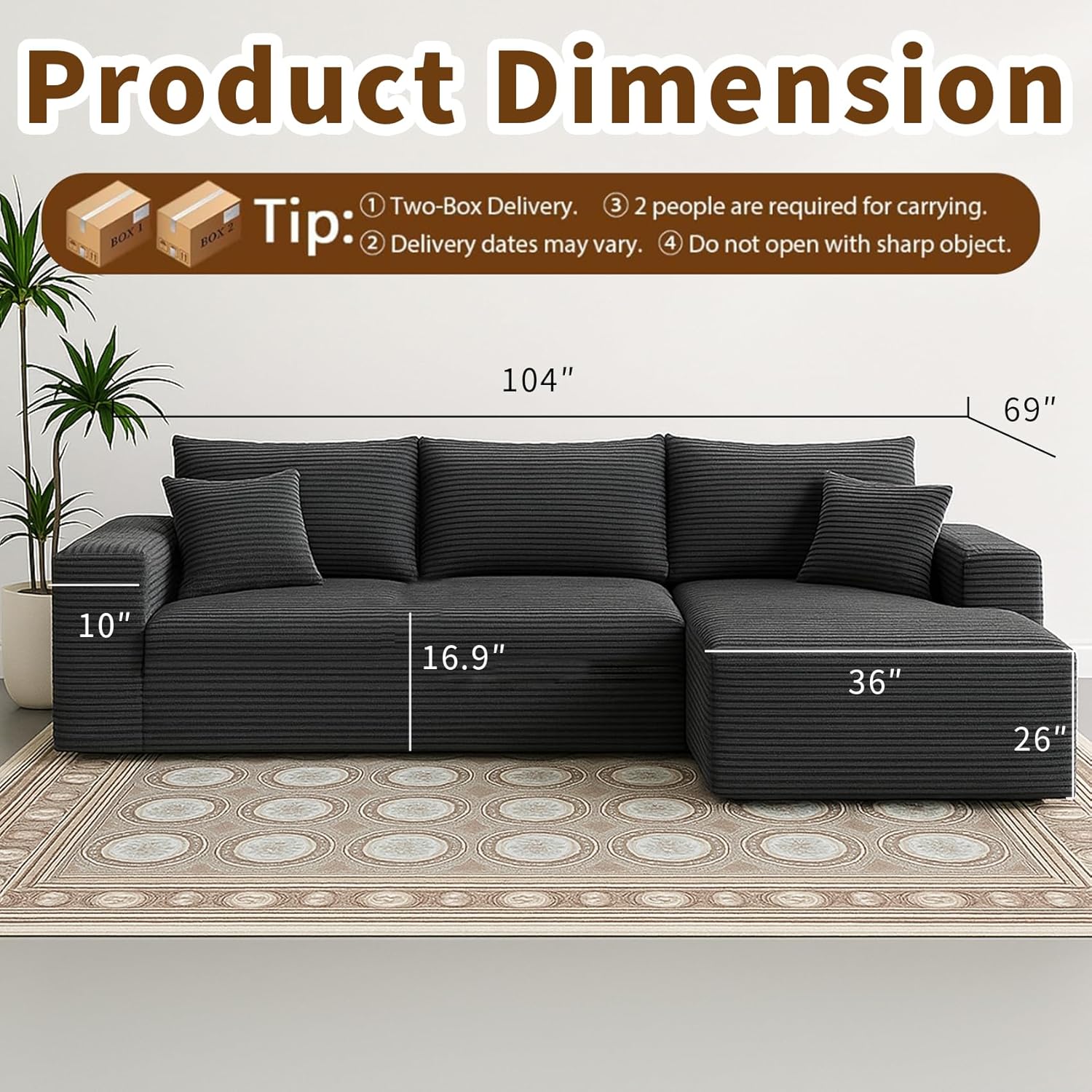 - 【Easy-to-Assemble Modular Sectional Sofa】This modern modular couch comes in two boxes and sets up in minutes—no tools needed. Perfect for dorms, small bedrooms, office lounges, or compact living rooms.