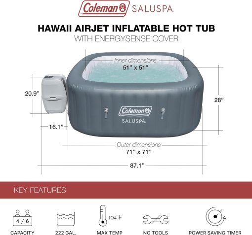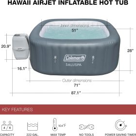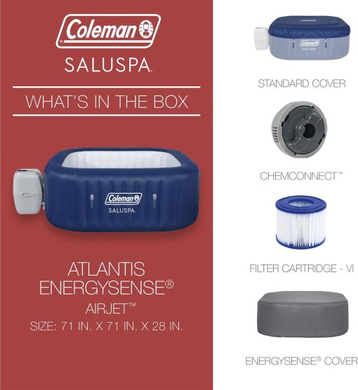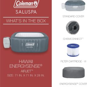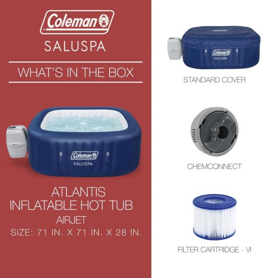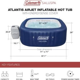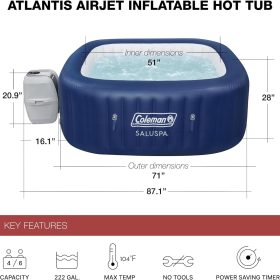 - SaluSpa Atlantis AirJet hot tub provides a soothing massage experience with 140 bubbling warm jets for up to 6 people while reaching up to 104 degrees Fahrenheit for ultimate relaxation