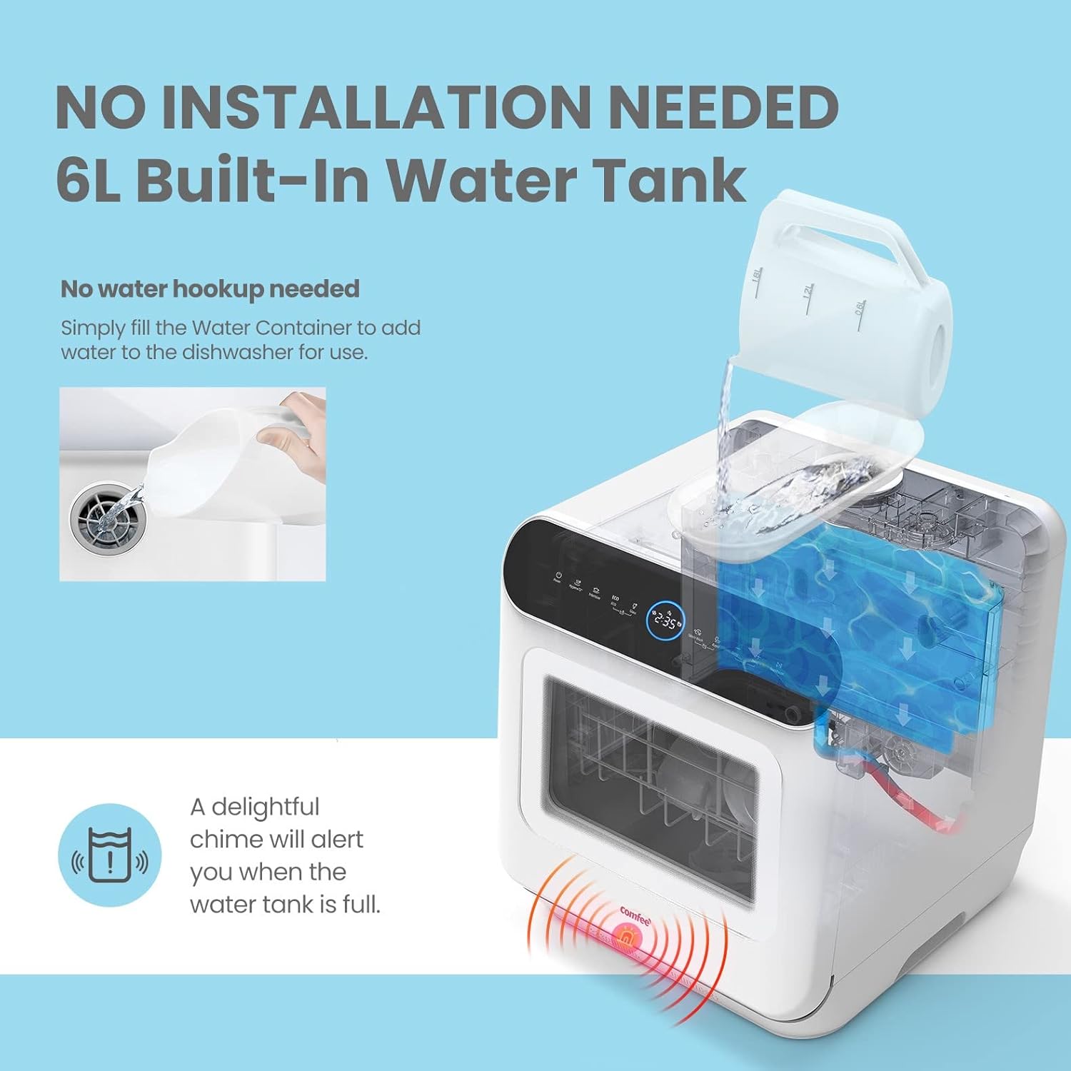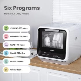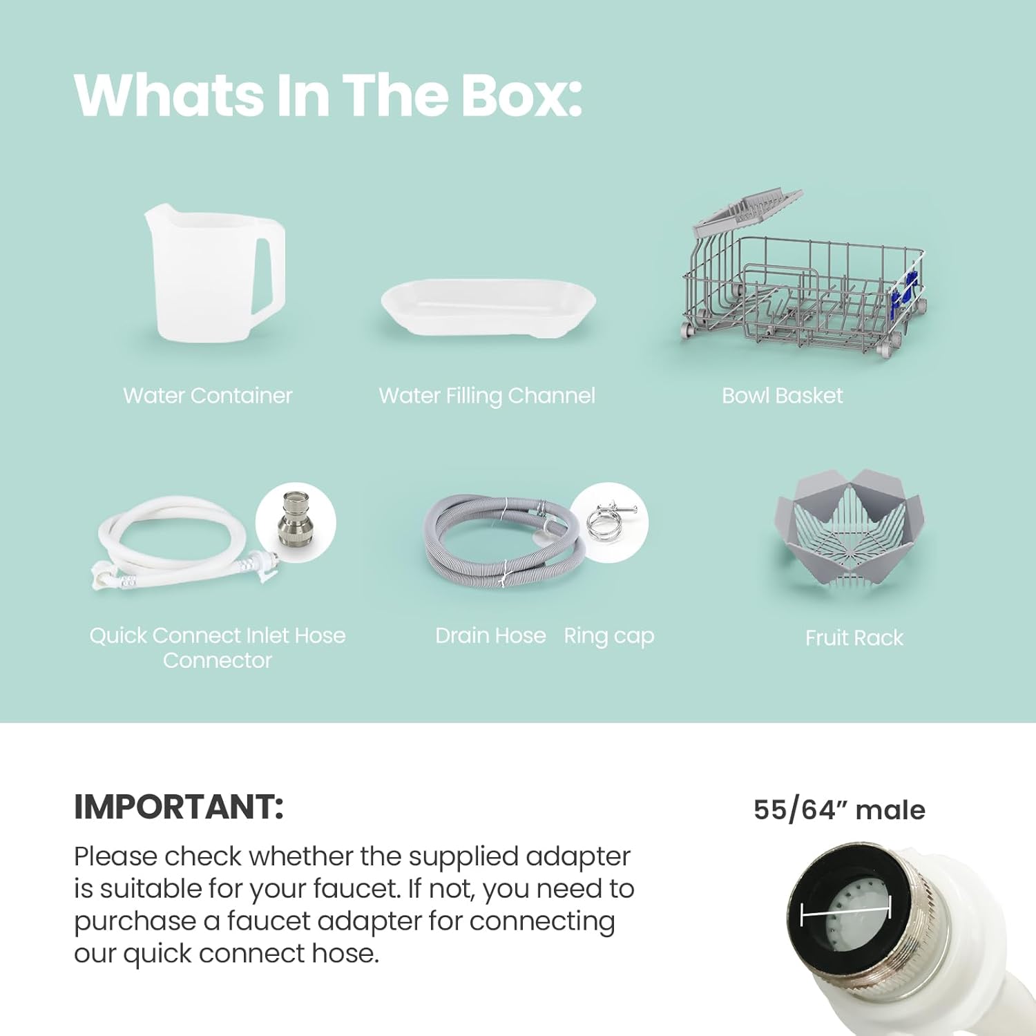 | Additional Features | Adjustable Rack, Touch Panel, Free Installation, Hi-temp Wash, Quick Wash Cycle, Air Refresh Function, 360° Range Cleaning, See-through Window, Ultra-Compact Design, 1/3 Water Consumption Compared to Handwashing |