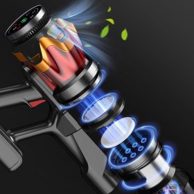 - ➤【LED Smart Touch Screen 】This cordless vacuum cleaner is equipped with LED smart touch screen, you can easily switch suction modes, the large icons on the display are more convenient and practical, real-time monitoring of the cordless vacuum’s working status and remaining power, and you can more efficiently schedule cleaning time and regular maintenance. The vacuum cleaner’s on button combined with the handle makes the vacuum cleaner more ergonomic and makes it easy for you to enjoy smart cleaning.