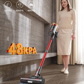 - ➤�?80W & 48000Pa Super Suction Power】This cordless vacuum cleaner features a newly upgraded 580W brushless motor that delivers a powerful 48,000 PA of suction power at 180,000 rpm. You can easily vacuum crumbs and dust from floors, pet hair from carpets, and dust from corners, walls and high places in a quiet environment (less than 62 dB noise). This cordless vacuum will make your cleaning easy and efficient.