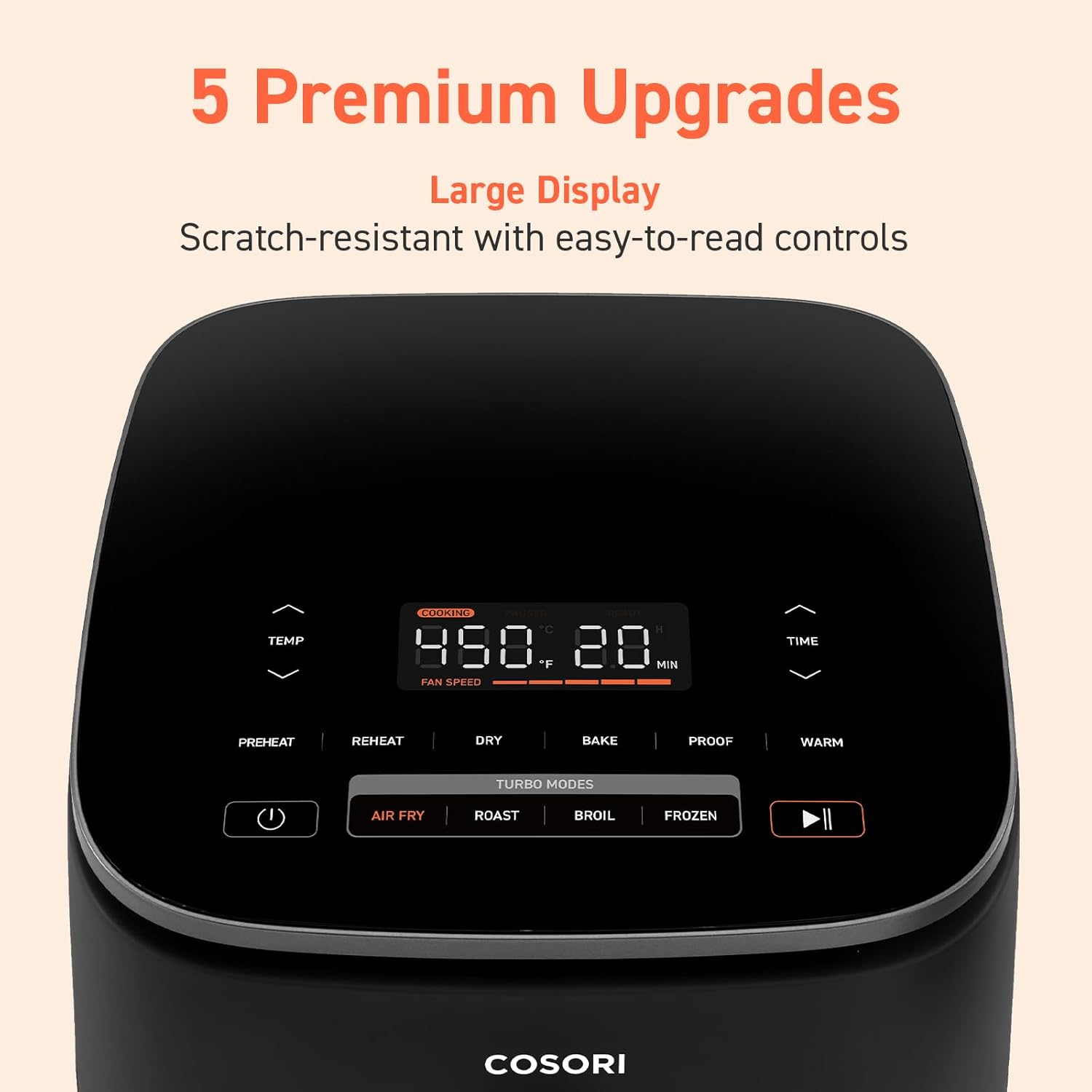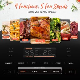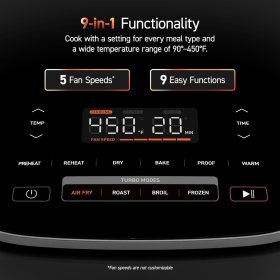 | Special Features | Temperature Control, Automatic Shut-Off, 𝟵 Versatile Cooking Functions & 𝟱-𝗟𝗲𝘃𝗲𝗹 Fan Speed & 𝟰 Turbo Modes & 𝟭𝟬𝟬+ In-App Recipes with Nutrition Facts & 𝟵𝟬°𝗙-𝟰𝟱𝟬°𝗙, Includes Envelope with Manual & Recipe Book |