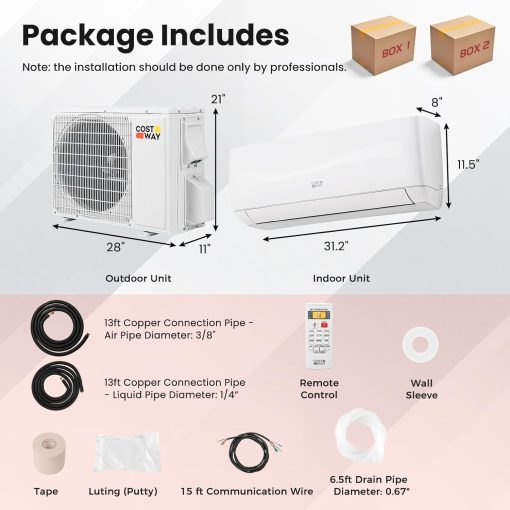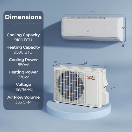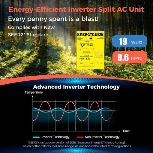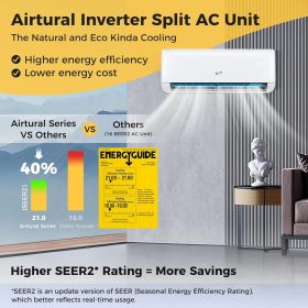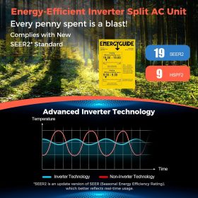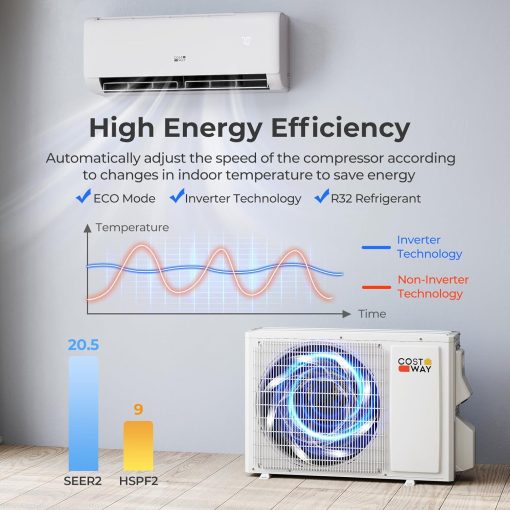 - [Energy Efficient Cooling & Heating:]Equipped with a high power compressor and 1 ton heat pump, this AHRI Certified pre-charged ac unit allows you to enjoy the convenience of cooling in summer and warming in winter. Besides, with an innovative inverter technology, the air conditioner changes the power supply frequency without frequently turning the compressor on and off, so as to reduce power consumption and prolong the service life of the equipment.