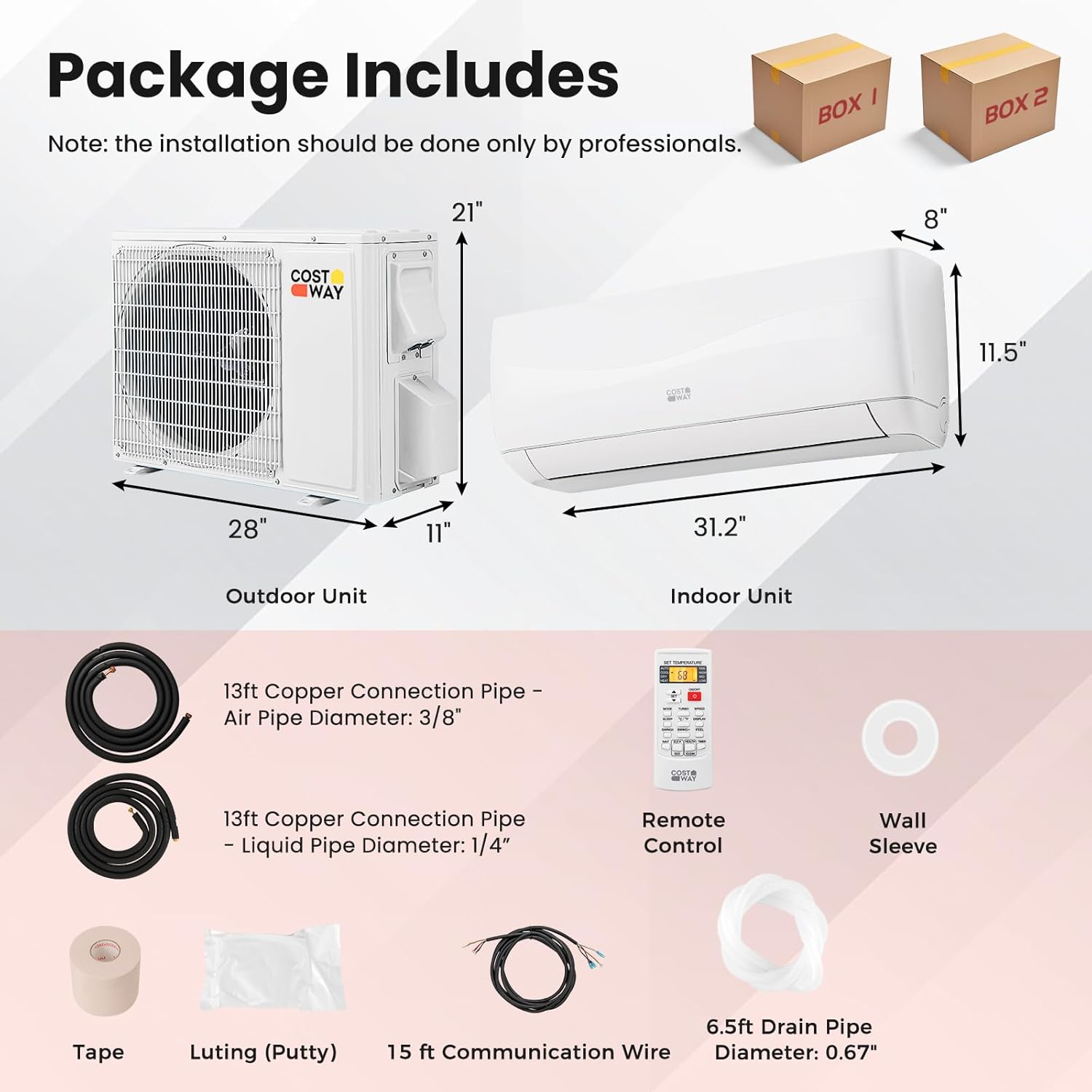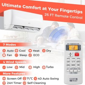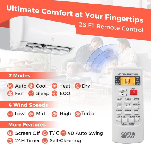 - [5 Modes for All-Year Comfort:]This 12000 BTU split-system AC unit has 5 working modes for you to choose from: auto, cool, dry, heat and fan mode. In addition, this split air conditioner also comes with 4 available fan speeds (low/medium/high/auto), sleep mode, ECO mode, iFEEL & turbo function to meet various needs.
