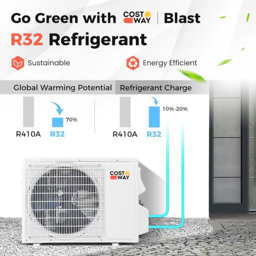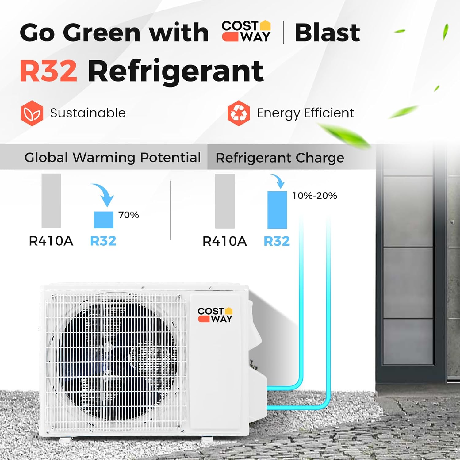 - Tips:Pre-charged with the advanced R32 refrigerant, our mini split stands as the premier eco-conscious option. In contrast, competitors rely on outdated refrigerants, which pose greater harm to the environment. Should the need arise to supplement refrigerant levels, kindly inquire about the accessibility of R32 at your nearby vendor.