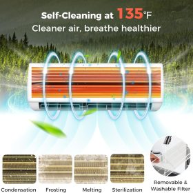- [Self Cleaning & Auto Defrost:]Designed with a self-cleaning function at high temperature of 134.6�?and a washable filter, this split air conditioner can automatically clean its interior and keep the air in your home fresh and clean. Moreover, the outdoor unit features an auto-defrost function to avoid damage and improve energy efficiency.