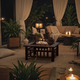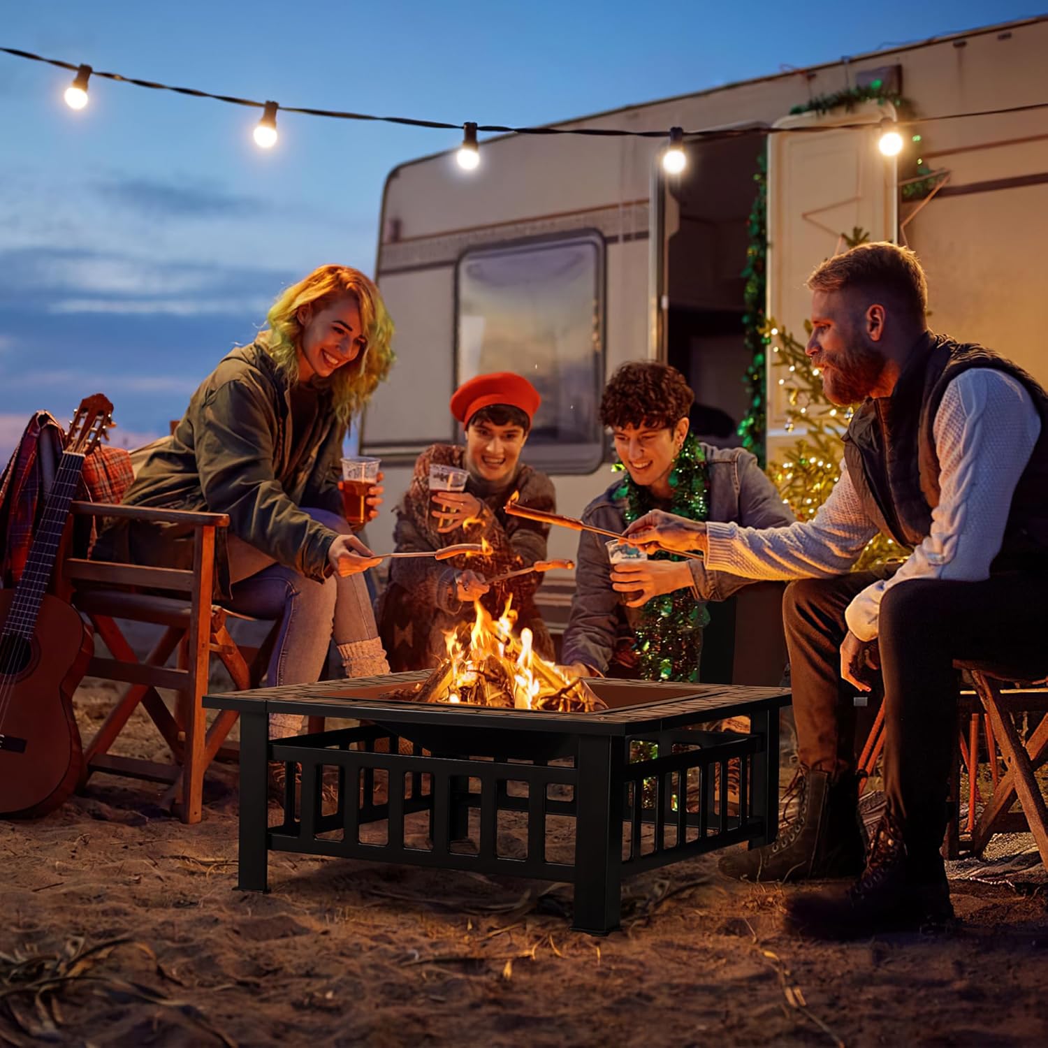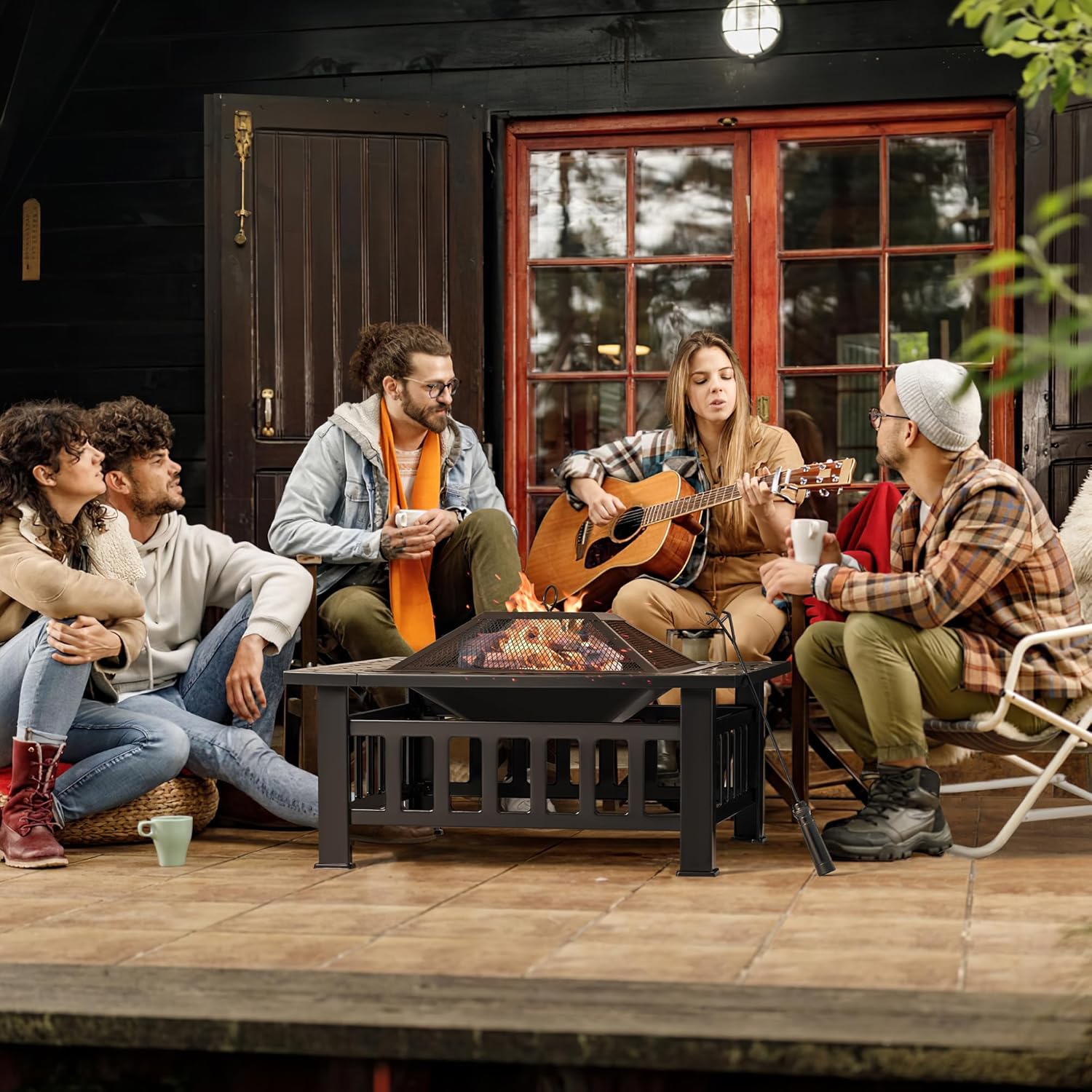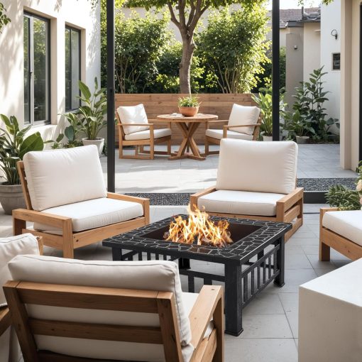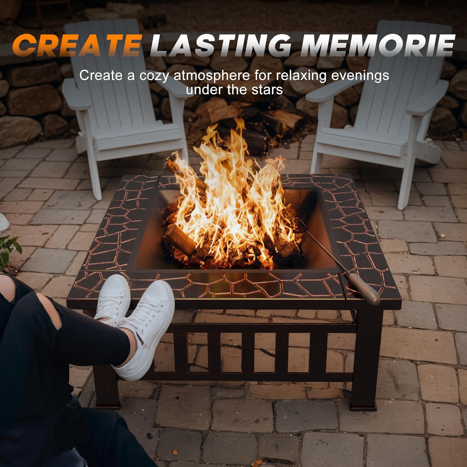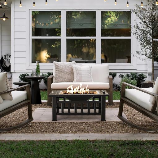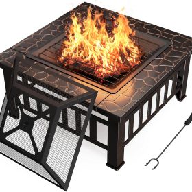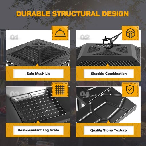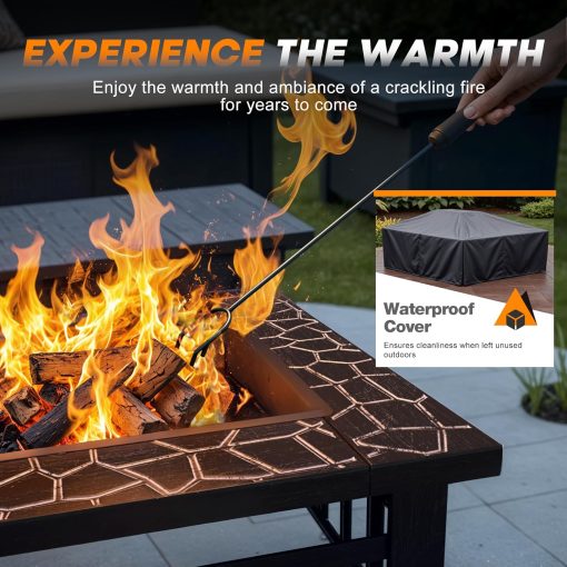 Devoko Outdoor Fire Pit, 32 Inch Firepit Table Metal Outdoor Fireplaces with Waterproof Cover for Outside Patio Camping