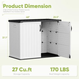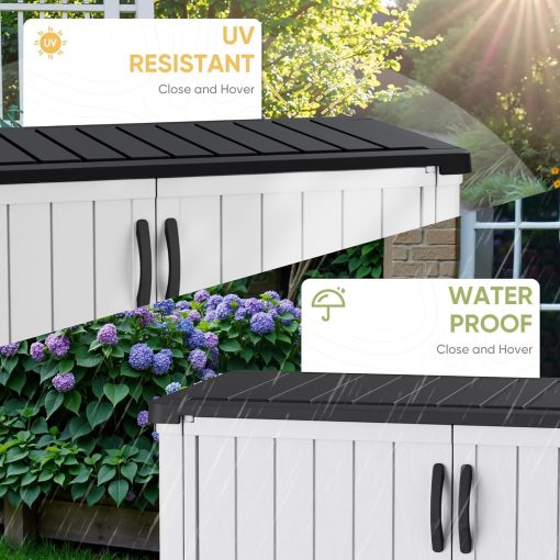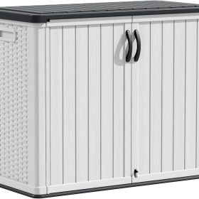 - Superior Material: The outdoor storage cabinet is made of high-density polyethylene resin material, which has excellent waterproof ability and UV protection, high temperature resistance, suitable for placing on decks, patios and gardens, etc.