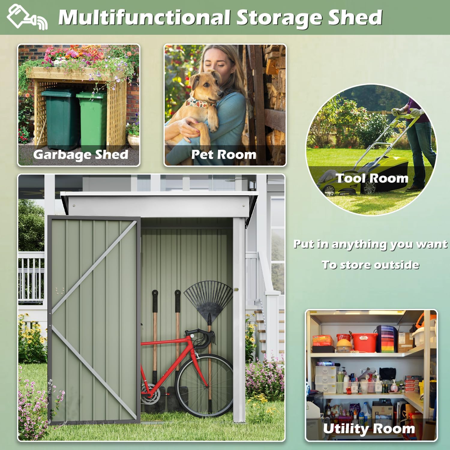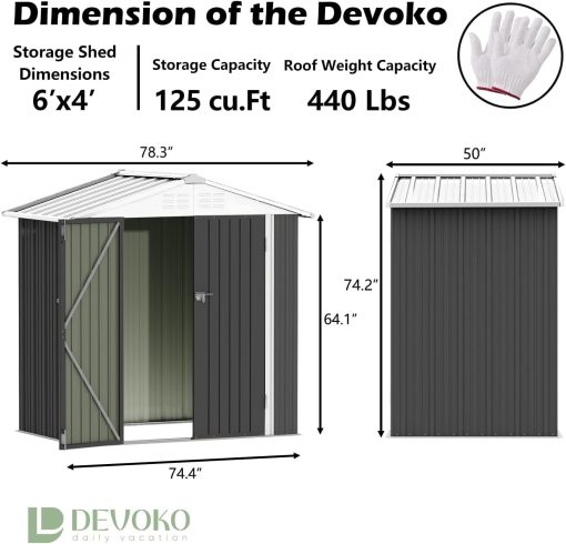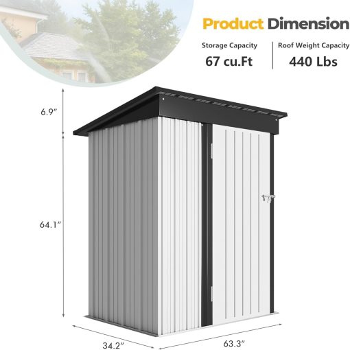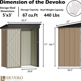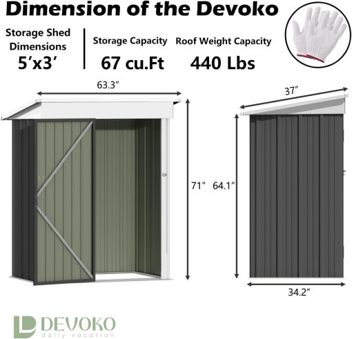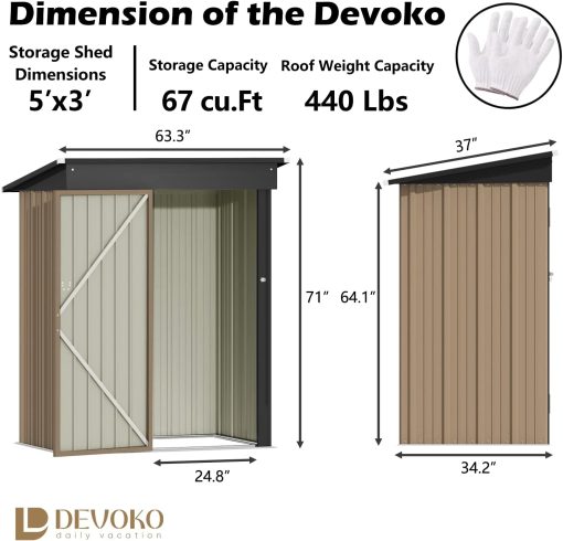 Devoko Outdoor Storage Shed 5 x 3 FT Lockable Metal Garden Shed Steel Anti-Corrosion Storage House with Single Lockable Door for Backyard Outdoor Patio