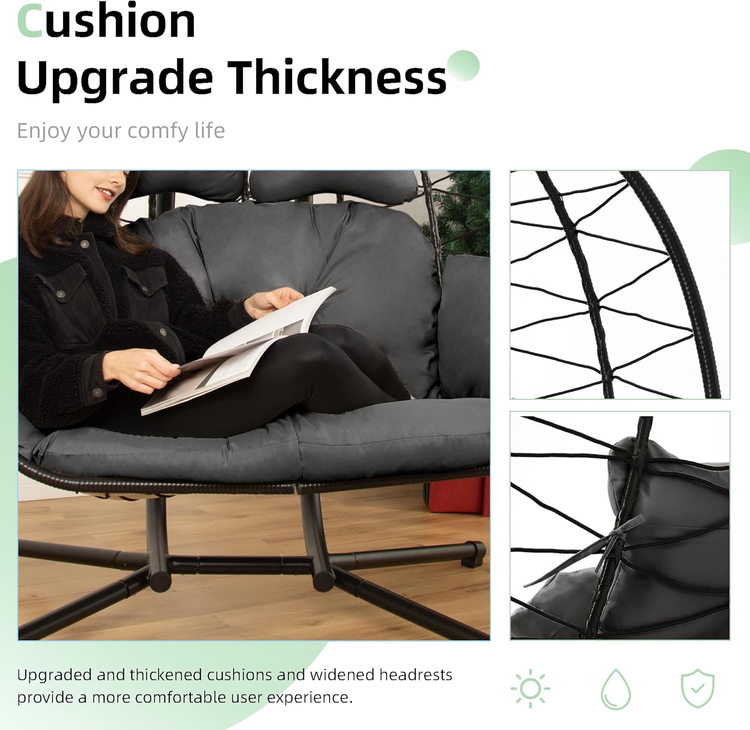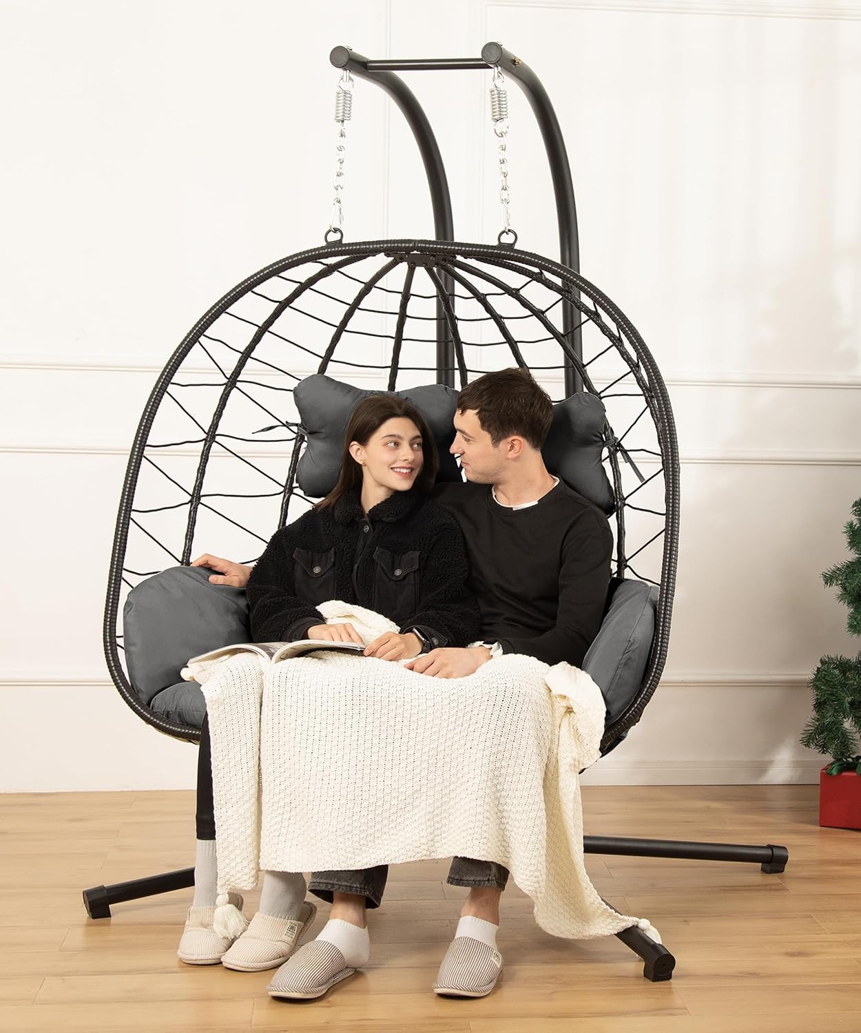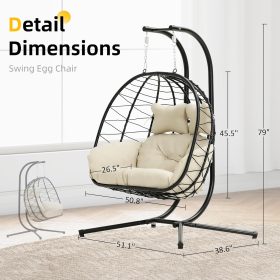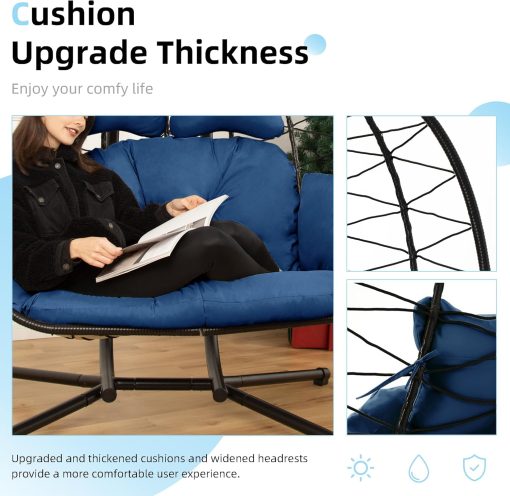 Double Egg Chair Hammock Swing Chair Foldable Hanging Loveseat UV Resistant Cushions